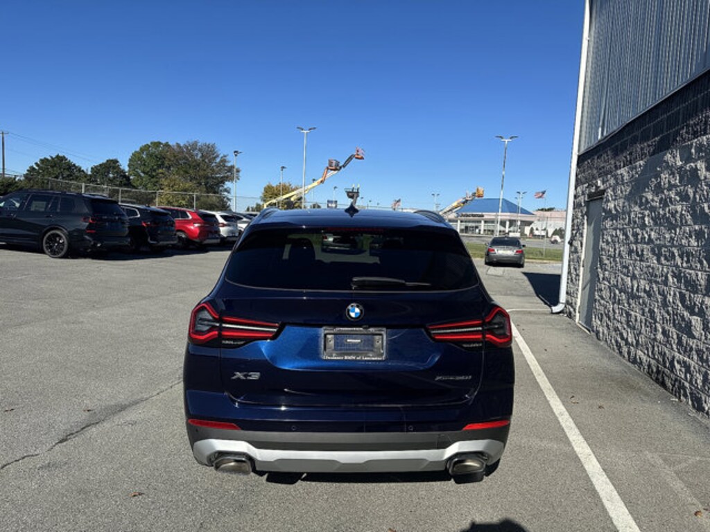 2023 BMW X3 xDrive30i Tanzanite Blue II MetallicClean CARFAX. CARFAX One-Owner. Odometer is 11700 miles below market average!Certified.BMW Certified Pre-Owned Details:* Warranty Deductible: $0* Multipoint Point Inspection* 1 year/Unlimited miles beginning after new car warranty expires. 6-yrs Roadside Assistance. SiriusXM Satellite Radio 3-mos free. Every BMW Certified Plug-in Hybrid comes with an 8-Year/100,000-Mile Battery Guarantee. The Initial Battery Transfers to the New Owner.* Vehicle History* Roadside Assistance* Limited Warranty: 12 Month/Unlimited Mile* Transferable Warranty4D Sport Utility AWD 8-Speed Automatic Sport 2.0L I4 TwinPower Turbo 8-Speed Automatic Sport, Active Park Distance Control, Apple CarPlay & Android Auto Compatibility, Comfort Access Keyless Entry, Connected Package Pro, ConnectedDrive Services, Driver Lumbar Support, Heated Front Seats, Heated Steering Wheel, Live Cockpit Pro w/Navigation, Navigation, Panoramic Moonroof, Parking Assistance Package, Parking Assistant Plus, Power Liftgate, Premium Package, Rear-View Camera, Remote Engine Start, Surround View w/3D View, Wheels: 19" x 7.5" Y-Spoke (Style 693).2023 BMW X3 xDrive30i