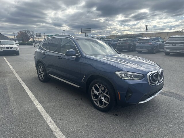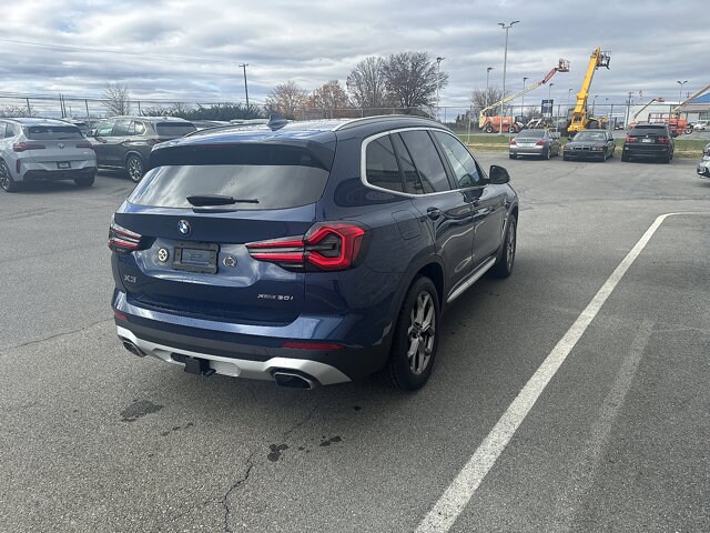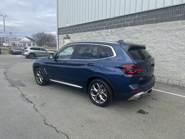 2024 BMW X3 xDrive30i Phytonic Blue MetallicClean CARFAX.Certified.BMW Certified Pre-Owned Details:* 1 year/Unlimited miles beginning after new car warranty expires. 6-yrs Roadside Assistance. SiriusXM Satellite Radio 3-mos free. Every BMW Certified Plug-in Hybrid comes with an 8-Year/100,000-Mile Battery Guarantee. The Initial Battery Transfers to the New Owner.* Multipoint Point Inspection* Roadside Assistance* Limited Warranty: 12 Month/Unlimited Mile* Vehicle History* Transferable Warranty* Warranty Deductible: $04D Sport Utility AWD 8-Speed Automatic Sport I4 8-Speed Automatic Sport, Active Park Distance Control, Apple CarPlay & Android Auto Compatibility, Comfort Access Keyless Entry, Connected Package Pro, Head-Up Display, Heated Front Seats, Heated Steering Wheel, Live Cockpit Pro w/Navigation, Lumbar Support, Navigation, Panoramic Moonroof, Parking Assistance Package, Parking Assistant Plus, Power Liftgate, Premium Package, Rear-View Camera, Remote Engine Start, Surround View w/3D View, Trailer Hitch, Wheels: 19" x 7.5" Y-Spoke (Style 693).2024 BMW X3 xDrive30i