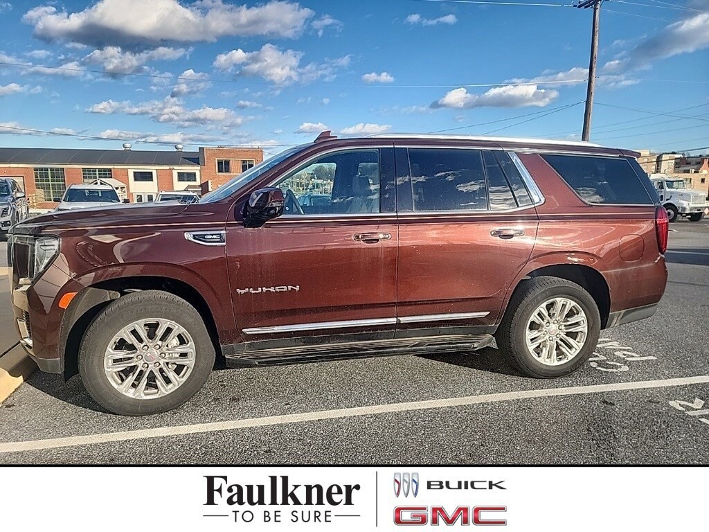2022 GMC Yukon SLT 10-Speed Automatic with Overdrive EcoTec3 5.3L V8 *SLT Package*, *Trailering Package*, 4WD, 2 Presets For Outside Rearview Mirrors, 3rd Row 60/40 Power-Folding Split-Bench Seat, 9 Speakers, Air Conditioning, AM/FM radio: SiriusXM with 360L, AM/FM Stereo, Automatic temperature control, Bose 9-Speaker Stereo Audio System Feature, Dual-Pane Panoramic Power Sunroof, Front dual zone A/C, Hands-Free Power Programmable Rear Liftgate, HD Surround Vision, Heated 2nd Row Outboard Position Seats, Heated Steering Wheel, Max Trailering Package, Memory seat, Outside Heated Power-Adjustable Mirrors, Power driver seat, Power Release 2nd Row 60/40 Split-Folding Bench Seat, Power steering, Power Tilt & Telescopic Steering Column, Power windows, Rear air conditioning, Rear Pedestrian Alert, Rear window defroster, Remote keyless entry, SiriusXM w/360L, SLT Luxury Package, Steering wheel mounted audio controls. 4WD 4D Sport Utility Redwood Metallic