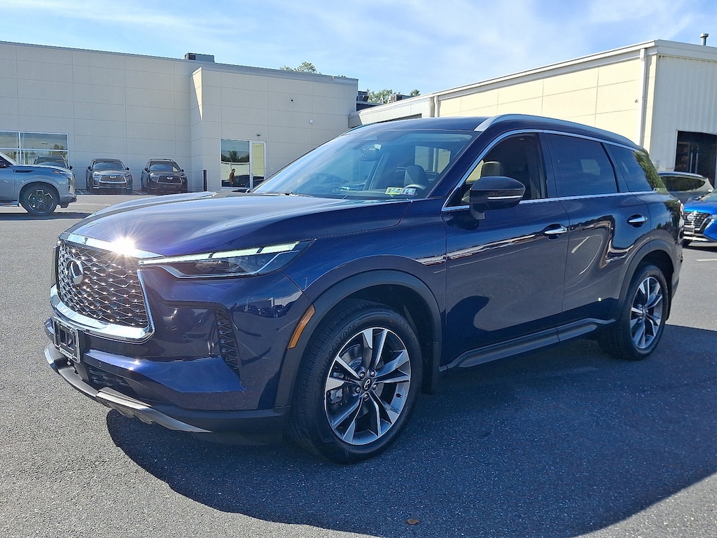 *Backup Camera*, *Bluetooth Hands-Free Calling*, *Built-in USB ports*, *Remote Engine Start*, *All Wheel Drive*, *Leather Seats*, *Heated Seats*, *Heated Steering Wheel*, *Sunroof/Moonroof*, *Push Button Start*, *Alloy Wheels*, *XM Satellite Radio*, *Apple Car Play*, *Android Auto*, QX60 LUXE, AWD, Grand Blue, 4-Wheel Disc Brakes, 9 Speakers, ABS brakes, Air Conditioning, Anti-whiplash front head restraints, Auto High-beam Headlights, Auto-dimming door mirrors, Auto-dimming Rear-View mirror, Cargo Mat (Reversible), Cargo Package, Dual front impact airbags, Dual front side impact airbags, Fully automatic headlights, Garage door transmitter: HomeLink, Heated & Cooled Front Bucket Seats, Heated door mirrors, Heated front seats, Heated steering wheel, Memory seat, Navigation system: INFINITI InTouch Navigation, Outside temperature display, Overhead console, Power Liftgate, Power moonroof, Radio data system, Rain sensing wipers, Rear window defroster, Roof rack: rails only, Security system, Steering wheel memory, Ventilated front seats.