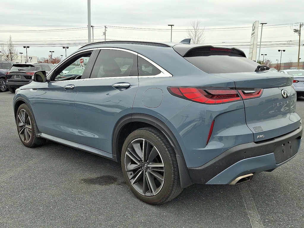 *Backup Camera*, *Bluetooth Hands-Free Calling*, *Built-in USB ports*, *Remote Engine Start*, *All Wheel Drive*, *Leather Seats*, *Heated Seats*, *Sunroof/Moonroof*, *Push Button Start*, *Navigation / GPS*, *INFINITI InTouch Navigation *, *Apple Car Play*, *Android Auto*, *Forward Emergency Braking*, *Adaptive Cruise Control*, *Multizone Climate Systems*, *Intelligent Forward Collision Warning*, *Lane Keep Assist with Lane Departure Warning*, *Touch-Screen Display*, QX55 LUXE, AWD, 4-Wheel Disc Brakes, ABS brakes, Auto High-beam Headlights, Auto-dimming Rear-View mirror, Automatic temperature control, Black Film Rear Bumper Protector, Cargo Net, Cargo Package, Dual front impact airbags, Dual front side impact airbags, Emergency communication system: INFINITI InTouch, Exterior Parking Camera Rear, Front dual zone A/C, Front fog lights, Garage door transmitter: HomeLink, Heated door mirrors, Heated Front Bucket Seats, Leather-Appointed Seat Trim, Power driver seat, Power Liftgate, Power moonroof, Power passenger seat, Radio data system, Radio: AM/FM Audio System, Rear Parking Sensors, Remote keyless entry, Reversible Cargo Mat, Wheels: 20" x 8.5" Machine Finished Aluminum Alloy.
