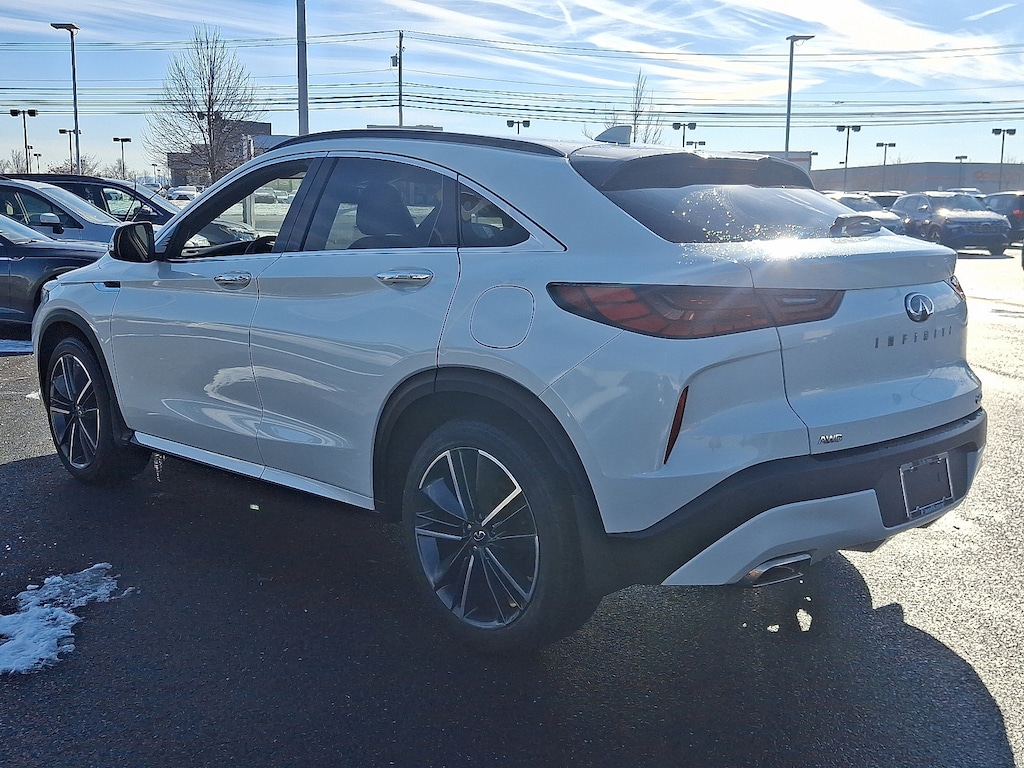 QX55 LUXE, AWD, 4-Wheel Disc Brakes, ABS brakes, Auto High-beam Headlights, Auto-dimming Rear-View mirror, Automatic temperature control, Black Film Rear Bumper Protector, Cargo Net, Cargo Package, Dual front impact airbags, Dual front side impact airbags, Emergency communication system: INFINITI InTouch, Exterior Parking Camera Rear, Front fog lights, Garage door transmitter: HomeLink, Heated door mirrors, Heated Front Bucket Seats, Leather-Appointed Seat Trim, Power driver seat, Power Liftgate, Power moonroof, Power passenger seat, Radio: AM/FM Audio System, Rear Parking Sensors, Remote keyless entry, Reversible Cargo Mat, Wheels: 20" x 8.5" Machine Finished Aluminum Alloy.