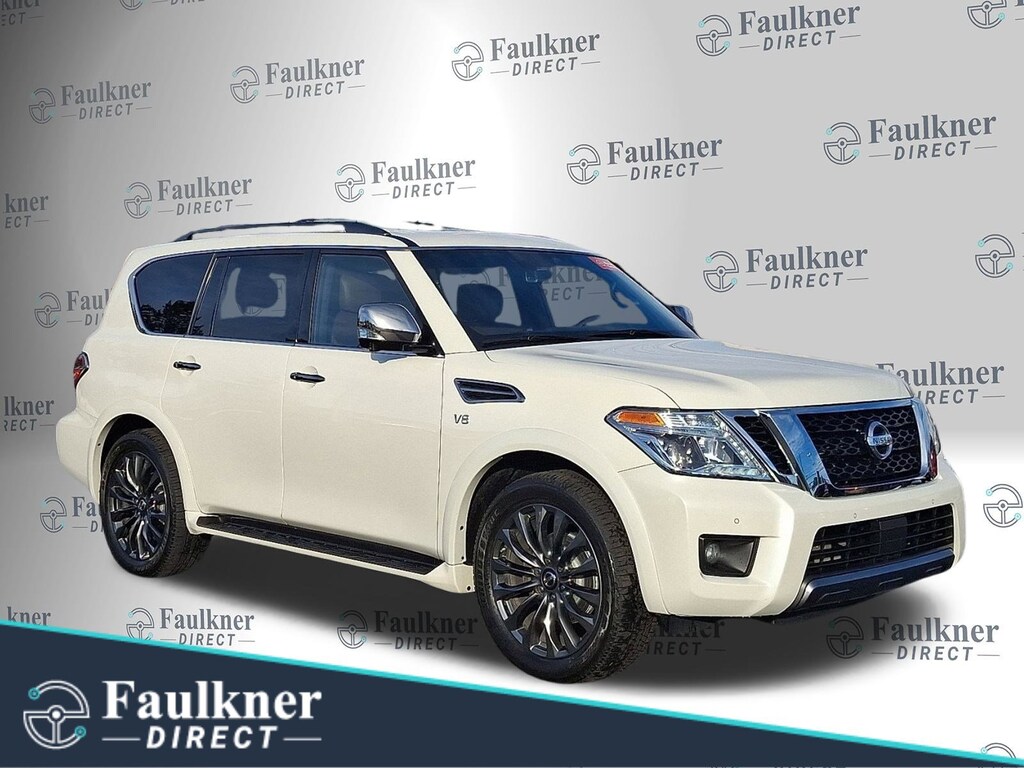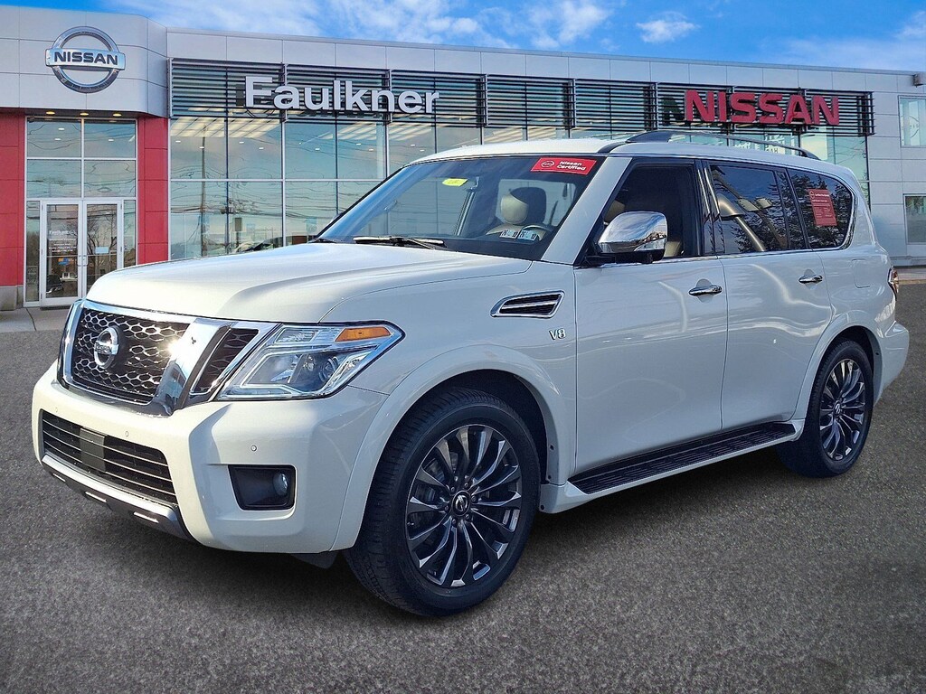 Recent Arrival! Certified. 2020 Nissan Armada Platinum Pearl White Tricoat *Schedule a test Drive at your home or office*, Certified Select Certified, 4WD, 13 Speakers, 22 Wheel Package, 2nd Row Captain's Chairs, 2nd Row Center Console w/Padded Armrest, 3rd Row Carpeted Floor Mats - Captain Seat, 3rd row seats: split-bench, 4-Wheel Disc Brakes, A/V remote, ABS brakes, Air Conditioning, Alloy wheels, AM/FM radio: SiriusXM, Anti-whiplash front head restraints, Auto tilt-away steering wheel, Auto-dimming door mirrors, Auto-dimming Rear-View mirror, Auto-leveling suspension, Automatic temperature control, Axle Ratio: 2.94, Brake assist, Bumpers: body-color, Captain's Chairs Package, Cargo Package, CD player, Cross Bars, Delay-off headlights, Driver door bin, Driver vanity mirror, Dual front impact airbags, Dual front side impact airbags, DVD-Audio, Electronic Stability Control, Emergency communication system: NissanConnect Services, Exterior Parking Camera Rear, Four wheel independent suspension, Front anti-roll bar, Front Bucket Seats, Front Center Armrest, Front dual zone A/C, Front fog lights, Front reading lights, Fully automatic headlights, Garage door transmitter: HomeLink, Headphones, Heated & Cooled Front Bucket Seats, Heated door mirrors, Heated front seats, Heated rear seats, Heated steering wheel, Illuminated entry, Leather Shift Knob, Leather-Appointed Seat Trim, Low tire pressure warning, Memory seat, Navigation System, Occupant sensing airbag, Outside temperature display, Overhead airbag, Overhead console, Panic alarm, Passenger door bin, Passenger vanity mirror, Platinum Reserve Package, Power door mirrors, Power driver seat, Power Liftgate, Power moonroof, Power passenger seat, Power steering, Power windows, Radio data system, Radio: AM/FM/SXM/CD/MP3/HD, Rain sensing wipers, Rear air conditioning, Rear anti-roll bar, Rear reading lights, Rear seat center armrest, Rear window defroster, Rear window wiper, Reclining 3rd row seat, Remote keyless entry, Security system, Special Paint - Pearl White, Speed control, Speed-sensing steering, Speed-Sensitive Wipers, Split folding rear seat, Spoiler, Steering wheel memory, Steering wheel mounted audio controls, Tachometer, Telescoping steering wheel, Tilt steering wheel, Traction control, Trip computer, Turn signal indicator mirrors, Two-Tone Leather Seat Trim, Variably intermittent wipers, Ventilated front seats, Voltmeter, Wheels: 20 Machine-Faced w/Tinted Clear Coat, Wheels: 22 x 8.0 14-Spoke Forged Aluminum-Alloy, 4WD.