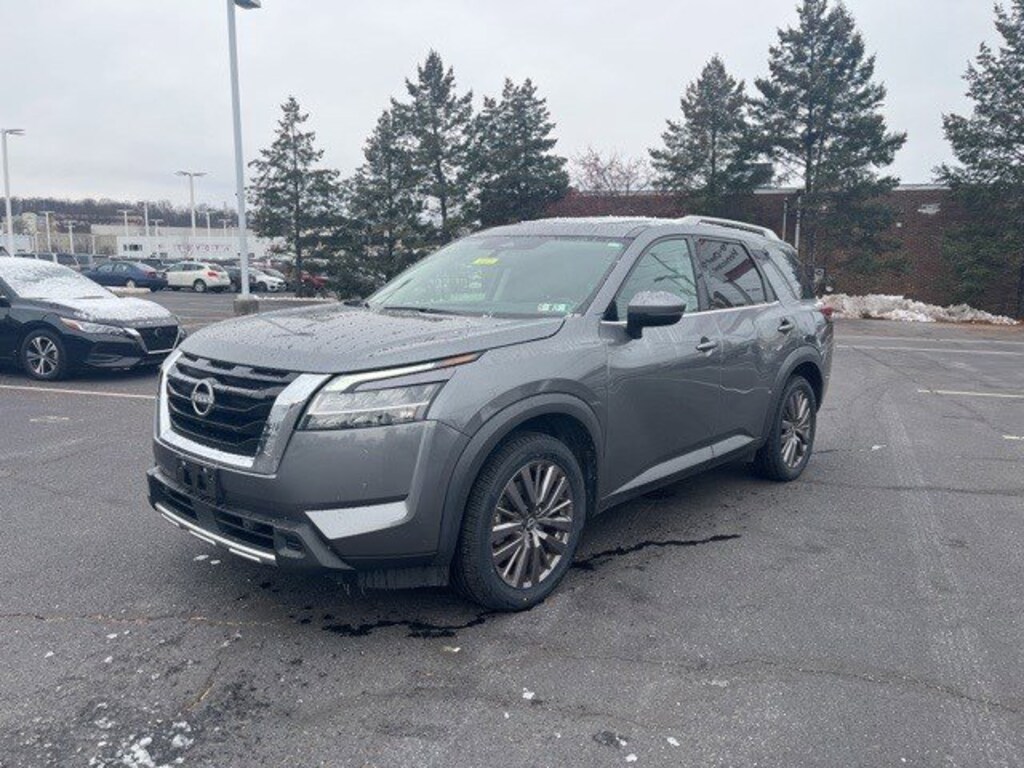 Recent Arrival! Certified. 2023 Nissan Pathfinder SL Gun Metallic *Schedule a test Drive at your home or office*, Nissan Certified Certified, 4WD, 18 Machined Alloy Wheels, 20 Painted Alloy Wheels, 2nd-Row Captain Chairs, 2nd-Row Removable Center Console, 3rd row seats: bench, 4-Wheel Disc Brakes, 6 Speakers, ABS brakes, Air Conditioning, Alloy wheels, AM/FM radio: SiriusXM, Auto High-beam Headlights, Auto-dimming Rear-View mirror, Automatic temperature control, Axle Ratio: 4.334, Bose Premium Audio System, Brake assist, Bumpers: body-color, Captain's Chairs Carpeted Floor Mats (Set of 4), Delay-off headlights, Driver door bin, Driver vanity mirror, Dual front impact airbags, Dual front side impact airbags, Electronic Stability Control, Emergency communication system: NissanConnect Services, Exterior Parking Camera Rear, Four wheel independent suspension, Front anti-roll bar, Front Bucket Seats, Front Center Armrest, Front dual zone A/C, Front reading lights, Fully automatic headlights, Garage door transmitter: HomeLink, Heated door mirrors, Heated Front Bucket Seats, Heated front seats, Heated Rear Seats, Heated steering wheel, Illuminated entry, Knee airbag, Leather Seating Surfaces, Leather steering wheel, Low tire pressure warning, Navigation system: NissanConnect Navigation, NissanConnect w/Navigation & Services, Occupant sensing airbag, Outside temperature display, Overhead airbag, Overhead console, Panic alarm, Panoramic Moonroof, Passenger door bin, Passenger vanity mirror, Power door mirrors, Power driver seat, Power Liftgate, Power passenger seat, Power steering, Power windows, Radio data system, Radio: AM/FM Audio System, Rear air conditioning, Rear anti-roll bar, Rear reading lights, Rear seat center armrest, Rear side impact airbag, Rear window defroster, Rear window wiper, Reclining 3rd row seat, Remote keyless entry, Security system, SL Premium Package, Speed control, Speed-sensing steering, Split folding rear seat, Spoiler, Steering wheel mounted audio controls, Tachometer, Telescoping steering wheel, Tilt steering wheel, Tow Hitch Receiver & Harness, Traction control, Trip computer, Turn signal indicator mirrors, Variably intermittent wipers, 4WD.