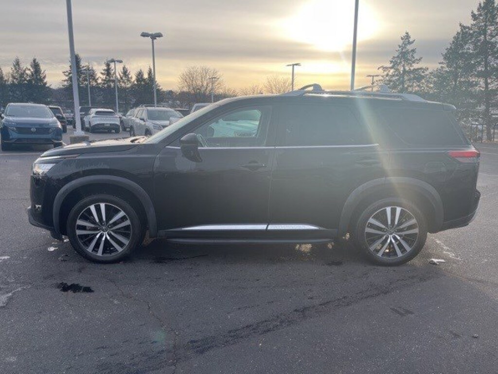Recent Arrival! Certified. 2023 Nissan Pathfinder Platinum Super Black *Schedule a test Drive at your home or office*, Nissan Certified Certified, 4WD, 13 Speakers, 2nd-Row Captain Chairs, 2nd-Row Removable Center Console, 3rd row seats: bench, 4-Wheel Disc Brakes, ABS brakes, Air Conditioning, Alloy wheels, AM/FM radio: SiriusXM, Auto High-beam Headlights, Auto tilt-away steering wheel, Auto-dimming Rear-View mirror, Automatic temperature control, Axle Ratio: 4.334, Bodyside moldings, Bose Premium Audio System, Brake assist, Bumpers: body-color, Captain's Chairs Carpeted Floor Mats (Set of 4), Cargo Area Protector, Cargo Net, Cargo Package, Cross Bars, Delay-off headlights, Driver door bin, Driver vanity mirror, Dual front impact airbags, Dual front side impact airbags, Electronic Stability Control, Emergency communication system: NissanConnect Services, Exterior Parking Camera Rear, First Aid Kit, Four wheel independent suspension, Front anti-roll bar, Front Bucket Seats, Front Center Armrest, Front dual zone A/C, Front reading lights, Fully automatic headlights, Garage door transmitter: HomeLink, Heads-Up Display, Heated & Cooled Front Bucket Seats, Heated door mirrors, Heated front seats, Heated rear seats, Heated steering wheel, Illuminated entry, Illuminated Kick Plate, Knee airbag, Leather steering wheel, LED Fog Lamps, Lighting Package (N93), Low tire pressure warning, Memory seat, Navigation system: NissanConnect Navigation, Nissan USB Charging Cable Set, NissanConnect w/Navigation & Services, Occupant sensing airbag, Outside temperature display, Overhead airbag, Overhead console, Panic alarm, Passenger door bin, Passenger vanity mirror, Platinum Captain Chairs Package, Power door mirrors, Power driver seat, Power Liftgate, Power moonroof, Power passenger seat, Power steering, Power windows, Radio data system, Radio: AM/FM Audio System, Rain sensing wipers, Rear air conditioning, Rear anti-roll bar, Rear reading lights, Rear seat center armrest, Rear side impact airbag, Rear window defroster, Rear window wiper, Reclining 3rd row seat, Remote keyless entry, Running Boards, Security system, Semi-Aniline Leather Seating Surfaces, Speed control, Speed-sensing steering, Speed-Sensitive Wipers, Split folding rear seat, Spoiler, Steering wheel memory, Steering wheel mounted audio controls, Tachometer, Telescoping steering wheel, Tilt steering wheel, Traction control, Trip computer, Turn signal indicator mirrors, Variably intermittent wipers, Ventilated front seats, Welcome Lighting, Wheels: 20 Machined Alloy w/Dark Met Gray Finish, 4WD.