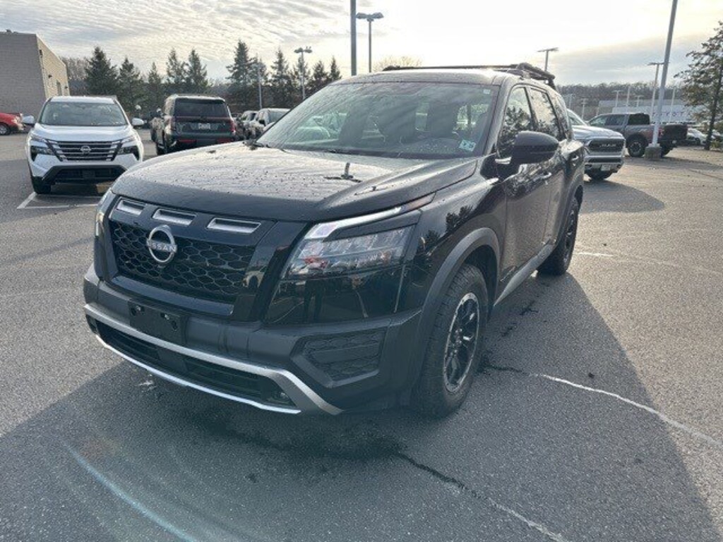Recent Arrival! Certified. 2023 Nissan Pathfinder Rock Creek Super Black *Schedule a test Drive at your home or office*, Nissan Certified Certified, 4WD, 3rd row seats: bench, 4-Wheel Disc Brakes, 6 Speakers, ABS brakes, Air Conditioning, Alloy wheels, AM/FM radio: SiriusXM, Auto High-beam Headlights, Automatic temperature control, Axle Ratio: 4.334, Brake assist, Delay-off headlights, Driver door bin, Driver vanity mirror, Dual front impact airbags, Dual front side impact airbags, Electronic Stability Control, Emergency communication system: NissanConnect Services, Four wheel independent suspension, Front anti-roll bar, Front Bucket Seats, Front Center Armrest, Front dual zone A/C, Front fog lights, Front reading lights, Fully automatic headlights, Heated door mirrors, Heated Front Bucket Seats, Heated front seats, Illuminated entry, Knee airbag, Leather steering wheel, Leatherette Seating Surfaces, Low tire pressure warning, Nissan USB Charging Cable Set, NissanConnect featuring Apple CarPlay and Android Auto, Occupant sensing airbag, Outside temperature display, Overhead airbag, Overhead console, Panic alarm, Passenger door bin, Passenger vanity mirror, Power door mirrors, Power driver seat, Power steering, Power windows, Radio data system, Radio: AM/FM Audio System w/NissanConnect, Rear air conditioning, Rear anti-roll bar, Rear Parking Sensors, Rear reading lights, Rear side impact airbag, Rear window defroster, Rear window wiper, Reclining 3rd row seat, Remote keyless entry, Rock Creek AS Floor Liners & Cargo Area Protector, Rock Creek Roof Rack, Roof rack, Security system, Speed control, Speed-sensing steering, Split folding rear seat, Spoiler, Steering wheel mounted audio controls, Tachometer, Telescoping steering wheel, Tilt steering wheel, Traction control, Trip computer, Turn signal indicator mirrors, Variably intermittent wipers, Wheels: 18 Beadlock Styled Design, 4WD.