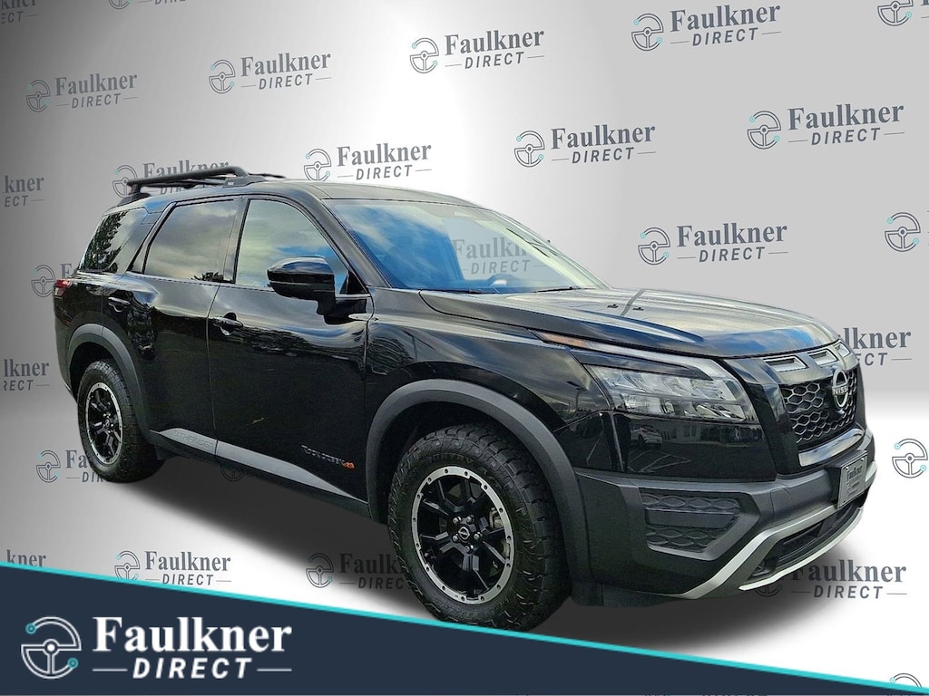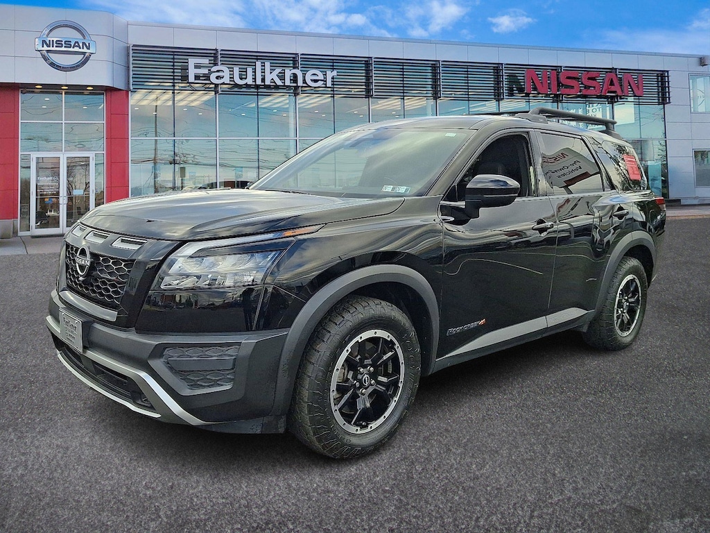 Certified. 2023 Nissan Pathfinder Rock Creek Super Black *Schedule a test Drive at your home or office*, Nissan Certified Certified, 4WD, 3rd row seats: bench, 4-Wheel Disc Brakes, 6 Speakers, ABS brakes, Air Conditioning, Alloy wheels, AM/FM radio: SiriusXM, Auto High-beam Headlights, Automatic temperature control, Axle Ratio: 4.334, Brake assist, Delay-off headlights, Driver door bin, Driver vanity mirror, Dual front impact airbags, Dual front side impact airbags, Electronic Stability Control, Emergency communication system: NissanConnect Services, Four wheel independent suspension, Front anti-roll bar, Front Bucket Seats, Front Center Armrest, Front dual zone A/C, Front fog lights, Front reading lights, Fully automatic headlights, Heated door mirrors, Heated Front Bucket Seats, Heated front seats, Illuminated entry, Knee airbag, Leather steering wheel, Leatherette Seating Surfaces, Low tire pressure warning, Nissan USB Charging Cable Set, NissanConnect featuring Apple CarPlay and Android Auto, Occupant sensing airbag, Outside temperature display, Overhead airbag, Overhead console, Panic alarm, Passenger door bin, Passenger vanity mirror, Power door mirrors, Power driver seat, Power steering, Power windows, Radio data system, Radio: AM/FM Audio System w/NissanConnect, Rear air conditioning, Rear anti-roll bar, Rear Parking Sensors, Rear reading lights, Rear side impact airbag, Rear window defroster, Rear window wiper, Reclining 3rd row seat, Remote keyless entry, Rock Creek AS Floor Liners & Cargo Area Protector, Rock Creek Roof Rack, Roof rack, Security system, Speed control, Speed-sensing steering, Split folding rear seat, Spoiler, Steering wheel mounted audio controls, Tachometer, Telescoping steering wheel, Tilt steering wheel, Traction control, Trip computer, Turn signal indicator mirrors, Variably intermittent wipers, Wheels: 18 Beadlock Styled Design, 4WD.