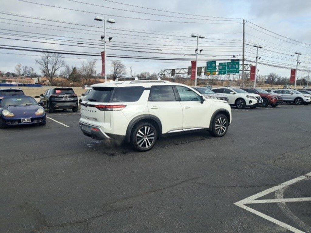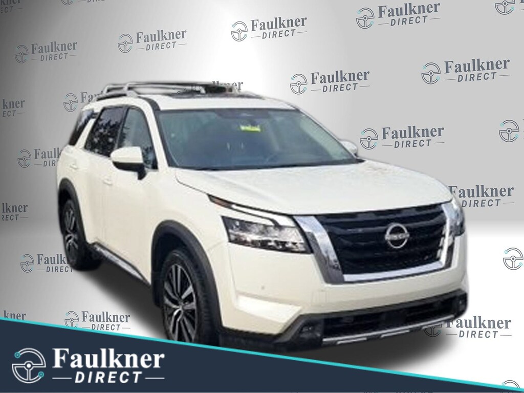 Recent Arrival! Certified. 2023 Nissan Pathfinder Platinum Pearl White Tricoat *Schedule a test Drive at your home or office*, Nissan Certified Certified, 4WD, 13 Speakers, 3rd row seats: bench, 4-Wheel Disc Brakes, ABS brakes, Air Conditioning, Alloy wheels, AM/FM radio: SiriusXM, Auto High-beam Headlights, Auto tilt-away steering wheel, Auto-dimming Rear-View mirror, Automatic temperature control, Axle Ratio: 4.334, Black Splash Guards (Set of 4), Bodyside moldings, Bose Premium Audio System, Brake assist, Bumpers: body-color, Captain's Chairs Carpeted Floor Mats (Set of 4), Cargo Net, Cargo Package, Cross Bars, Delay-off headlights, Driver door bin, Driver vanity mirror, Dual front impact airbags, Dual front side impact airbags, Electronic Stability Control, Emergency communication system: NissanConnect Services, Exterior Parking Camera Rear, Four wheel independent suspension, Front anti-roll bar, Front Bucket Seats, Front Center Armrest, Front dual zone A/C, Front reading lights, Fully automatic headlights, Garage door transmitter: HomeLink, Heads-Up Display, Heated & Cooled Front Bucket Seats, Heated door mirrors, Heated front seats, Heated rear seats, Heated steering wheel, Illuminated entry, Knee airbag, Leather steering wheel, LED Fog Lamps, Low tire pressure warning, Memory seat, Navigation system: NissanConnect Navigation, NissanConnect w/Navigation & Services, Occupant sensing airbag, Outside temperature display, Overhead airbag, Overhead console, Panic alarm, Passenger door bin, Passenger vanity mirror, Platinum Captain Chairs Package, Power door mirrors, Power driver seat, Power Liftgate, Power moonroof, Power passenger seat, Power steering, Power windows, Radio data system, Radio: AM/FM Audio System, Rain sensing wipers, Rear air conditioning, Rear anti-roll bar, Rear reading lights, Rear seat center armrest, Rear side impact airbag, Rear window defroster, Rear window wiper, Reclining 3rd row seat, Remote keyless entry, Security system, Semi-Aniline Leather Seating Surfaces, Speed control, Speed-sensing steering, Speed-Sensitive Wipers, Split folding rear seat, Spoiler, Steering wheel memory, Steering wheel mounted audio controls, Tachometer, Telescoping steering wheel, Tilt steering wheel, Traction control, Trip computer, Turn signal indicator mirrors, Variably intermittent wipers, Ventilated front seats, Wheels: 20 Machined Alloy w/Dark Met Gray Finish, 4WD.