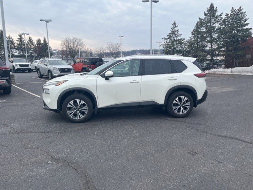 Priced below KBB Fair Purchase Price! Recent Arrival! Certified. 2023 Nissan Rogue SV Pearl White Tricoat *Schedule a test Drive at your home or office*, Nissan Certified Certified, AWD, 18 Aluminum Alloy Wheels, 4-Wheel Disc Brakes, 5.604 Axle Ratio, 6 Speakers, ABS brakes, Air Conditioning, Alloy wheels, AM/FM Radio, AM/FM radio: SiriusXM, Auto High-beam Headlights, Automatic temperature control, Black Splash Guards (Set of 4), Brake assist, Bumpers: body-color, Chrome Rear Bumper Protector, Cloth Seat Trim, Delay-off headlights, Driver door bin, Driver vanity mirror, Dual front impact airbags, Dual front side impact airbags, Electronic Stability Control, Emergency communication system: NissanConnect Services, First Aid Kit, Floor Mats w/1-Piece Cargo Area Protector, Four wheel independent suspension, Frameless Rearview Mirror w/Universal Remote, Front anti-roll bar, Front Bucket Seats, Front Center Armrest, Front dual zone A/C, Front reading lights, Fully automatic headlights, Heated door mirrors, Illuminated entry, Knee airbag, Low tire pressure warning, NissanConnect featuring Apple CarPlay and Android Auto, Occupant sensing airbag, Outside temperature display, Overhead airbag, Overhead console, Panic alarm, Passenger door bin, Passenger vanity mirror, Power door mirrors, Power driver seat, Power steering, Power windows, Radio data system, Rear anti-roll bar, Rear Parking Sensors, Rear seat center armrest, Rear side impact airbag, Rear window defroster, Rear window wiper, Remote keyless entry, Speed control, Speed-Sensitive Wipers, Split folding rear seat, Spoiler, Steering wheel mounted audio controls, Tachometer, Telescoping steering wheel, Tilt steering wheel, Traction control, Trip computer, Variably intermittent wipers, AWD.