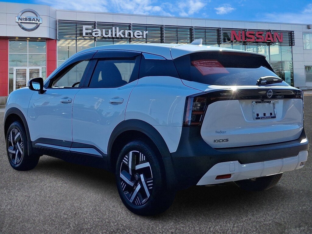 Recent Arrival! Certified. 2025 Nissan Kicks SV Fresh Powder *Schedule a test Drive at your home or office*, Nissan Certified Certified, 4 Speakers, 4-Wheel Disc Brakes, ABS brakes, Air Conditioning, AM/FM radio: Sirius, Auto High-beam Headlights, Blind Spot Warning, Brake assist, Bumpers: body-color, Carpeted Floor Mats, Cloth Seat Trim, Driver door bin, Driver vanity mirror, Dual front impact airbags, Dual front side impact airbags, Electronic Stability Control, Front anti-roll bar, Front Bucket Seats, Front Center Armrest, Front reading lights, Front wheel independent suspension, Fully automatic headlights, Illuminated entry, Knee airbag, Low tire pressure warning, Occupant sensing airbag, Outside temperature display, Overhead airbag, Panic alarm, Passenger door bin, Passenger vanity mirror, Power door mirrors, Power steering, Power windows, Radio data system, Radio: AM/FM Audio System, Rear anti-roll bar, Rear Parking Sensors, Rear reading lights, Rear side impact airbag, Rear window defroster, Rear window wiper, Remote keyless entry, Security system, Speed control, Speed-sensing steering, Splash Guards, Split folding rear seat, Spoiler, Sport steering wheel, Steering wheel mounted audio controls, Tachometer, Telescoping steering wheel, Tilt steering wheel, Traction control, Trip computer, Variably intermittent wipers, Wheels: 17 Steel Flex w/Full Covers, Wireless Apple CarPlay/Wireless Android Auto.
