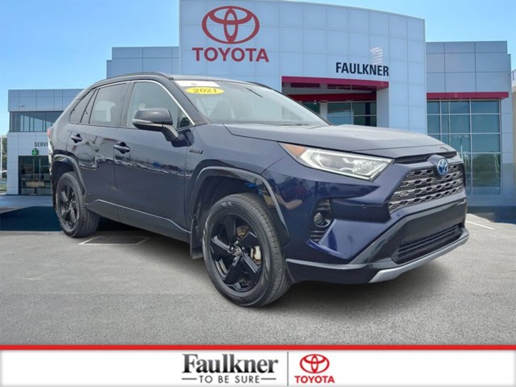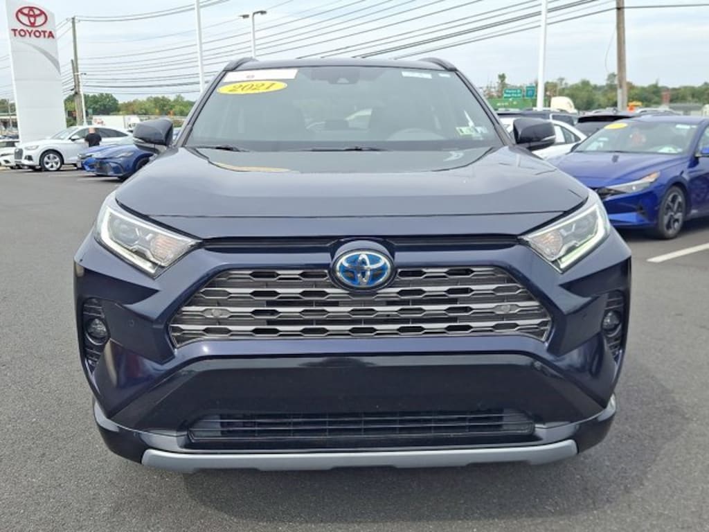 Priced below KBB Fair Purchase Price!CARFAX One-Owner, Local Trade, Non-Smoker, 2.5L 4-Cylinder, 4-Wheel Disc Brakes, ABS brakes, Active Cruise Control, Apple CarPlay/Android Auto, Auto High-beam Headlights, Blind Spot Monitor, Dual front impact airbags, Dual front side impact airbags, Emergency communication system: Safety Connect with 1-year trial, Front & Rear Parking Assist w/Automated Braking, Front dual zone A/C, Fully automatic headlights, Garage door transmitter: HomeLink, Heated 3-Spoke Leather Steering Wheel, Illuminated entry, Intelligent Clearance Sonar (ICS), Knee airbag, Lane Departure Warning System, Low tire pressure warning, Navigation System, Occupant sensing airbag, Outside temperature display, Overhead airbag, Power door mirrors, Power driver seat, Power Liftgate, Qi-Compatible Wireless Smartphone Charging, Radio: Premium Audio w/Dynamic Navigation & JBL, Rain Sensing Front Wipers, SofTex Seat Trim (EC), Steering wheel mounted audio controls, Telescoping steering wheel, Tilt steering wheel, Turn signal indicator mirrors, Wheels: 18" x 7.0J Black-Painted Aluminum Alloy, Wiper Deicer, XSE Advanced Technology Package, XSE Grade Weather Package. CARFAX One-Owner. Toyota Certified Used Hybrids Details:* Limited Warranty: 12 Month/12,000 Mile Limited Comprehensive Warranty: 12 Month/12,000 Mile (whichever comes first) from certified purchase date* Roadside Assistance* Vehicle History* Powertrain Limited Warranty: 84 Month/100,000 Mile (whichever comes first) from TCUV purchase date* Warranty Deductible: $0* 160 Point Inspection* Transferable Warranty* HV Battery Warranty coverage for 10 years/150,000 miles. (2020 model year forward Hybrid-Related) 8 years/100,000 miles, whichever comes first, from original date of first use when sold as new. Fuel Cell Vehicle Warranty 8 years/100,000 mile (whichever comes first) on key fuel cell components. Roadside Assistance for 7 Year / 100,000 MileCertified.Blue Print/Midnight Black Metallic 2021 Toyota RAV4 Hybrid XSE CERTIFIED AWD eCVT 2.5L 4-Cylinder41/38 City/Highway MPG