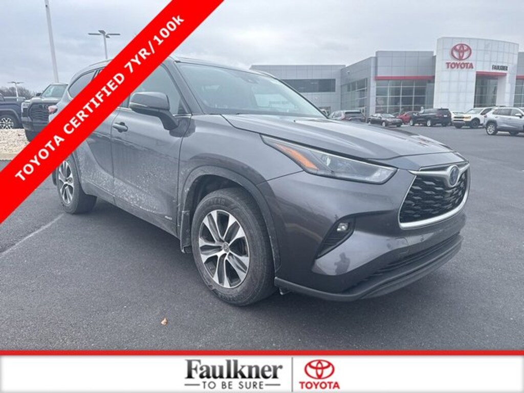 CARFAX One-Owner, Local Trade, Non-Smoker, 2.5L I4 PDI Hybrid DOHC 16V LEV3-SULEV30 186hp, 3rd row seats: split-bench, 4-Wheel Disc Brakes, ABS brakes, Apple CarPlay/Android Auto, Automatic temperature control, Brake assist, Dual front impact airbags, Dual front side impact airbags, Electronic Stability Control, Emergency communication system: Safety Connect with 1-year trial, Exterior Parking Camera Rear, Four wheel independent suspension, Front dual zone A/C, Front fog lights, Garage door transmitter: HomeLink, Heated door mirrors, Heated Front Bucket Seats, Heated front seats, Knee airbag, Occupant sensing airbag, Overhead airbag, Power door mirrors, Power driver seat, Power Liftgate, Power moonroof, Power passenger seat, Rear air conditioning, Reclining 3rd row seat, SofTex Seat Trim, Speed-sensing steering, Split folding rear seat, Steering wheel mounted audio controls, Telescoping steering wheel, Tilt steering wheel, Traction control, Wheels: 18" Machined-Finish Alloy. CARFAX One-Owner. Toyota Gold Certified Details:* Warranty Deductible: $0* Powertrain Limited Warranty: 84 Month/100,000 Mile (whichever comes first) from TCUV purchase date* 160 Point Inspection* Roadside Assistance for 7 Year / 100,000 Mile. Standard New-Car Financing Rates Available. Warranty honored at over 1,400 Toyota dealers in the continental U.S. & Canada. Trade-ins accepted. Trouble-free handling of your transaction, including DMV paperwork* Transferable Warranty* Limited Warranty: 12 Month/12,000 Mile Limited Comprehensive Warranty: 12 Month/12,000 Mile (whichever comes first) from certified purchase date* Vehicle History* Roadside AssistanceCertified.Magnetic Gray Metallic 2022 Toyota Highlander Hybrid XLE CERTIFIED AWD eCVT 2.5L I4 PDI Hybrid DOHC 16V LEV3-SULEV30 186hpRecent Arrival! 35/35 City/Highway MPG