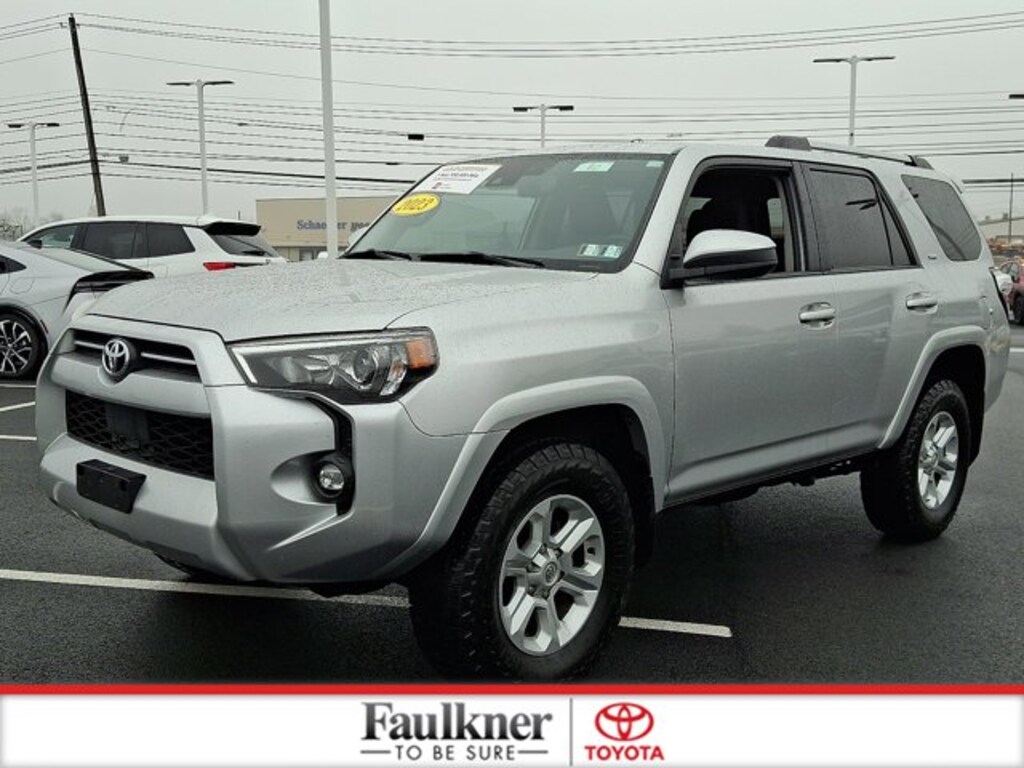 CARFAX One-Owner, Non-Smoker, 4WD, Black/Graphite w/Fabric Seat Trim, 17" 6-Spoke Alloy Wheels, 4-Wheel Disc Brakes, ABS brakes, Anti-whiplash front head restraints, Apple CarPlay/Android Auto, Brake assist, Dual front impact airbags, Dual front side impact airbags, Electronic Stability Control, Emergency communication system: Safety Connect (1-year trial), Exterior Parking Camera Rear, Front anti-roll bar, Front fog lights, Front wheel independent suspension, Heated door mirrors, Knee airbag, Low tire pressure warning, Occupant sensing airbag, Overhead airbag, Power door mirrors, Power driver seat, Rear anti-roll bar, Speed control, Speed-sensing steering, Split folding rear seat, Steering wheel mounted audio controls, Tilt steering wheel, Traction control. CARFAX One-Owner. Certification Program Details: Toyota Gold Certified Details: * 160 Point Inspection * Powertrain Limited Warranty: 84 Month/100,000 Mile (whichever comes first) from TCUV purchase date * Limited Warranty: 12 Month/12,000 Mile Limited Comprehensive Warranty: 12 Month/12,000 Mile (whichever comes first) from certified purchase date * Roadside Assistance for 7 Year / 100,000 Mile * Warranty Deductible: $0 * Transferable Warranty *Warranty Honored at Over 1,400 Toyota Dealers in the Continental U.S. and Canada Certified.Classic Silver Metallic 2023 Toyota 4Runner SR5 CERTIFIED 4WD Automatic 4.0L V6 DOHC 24V