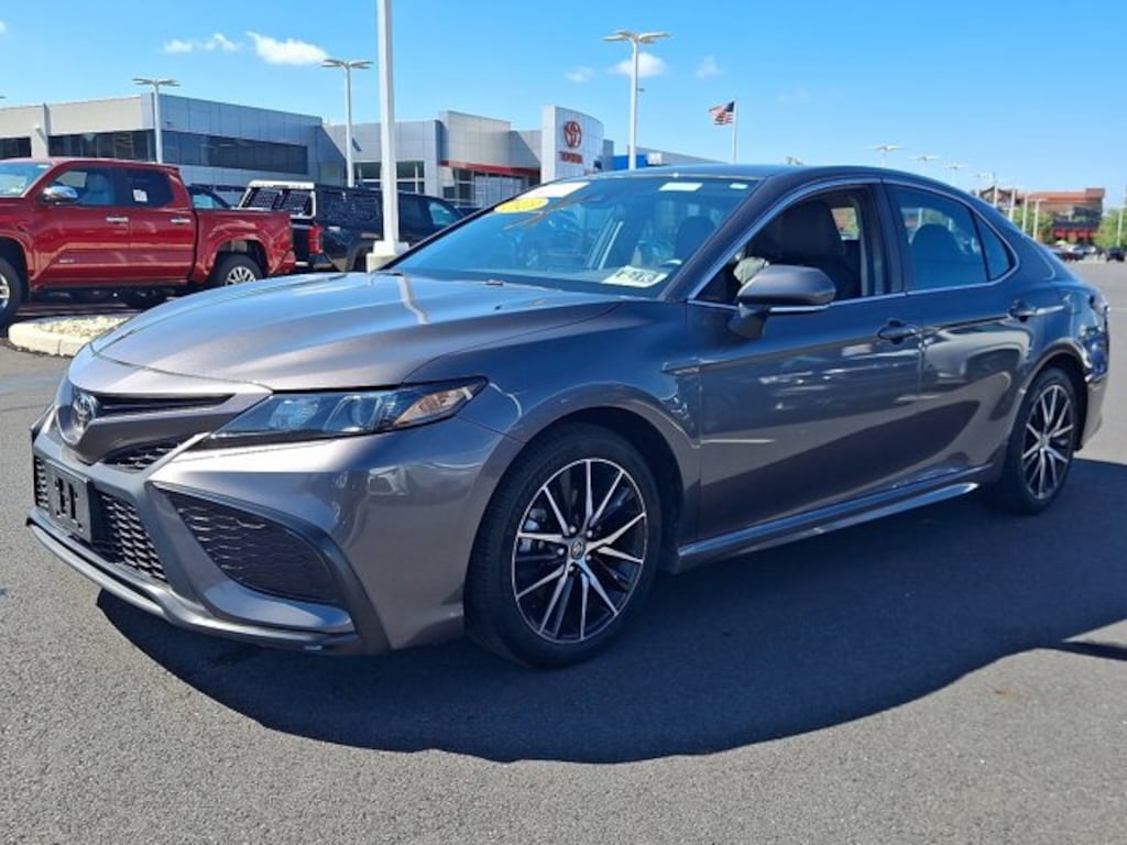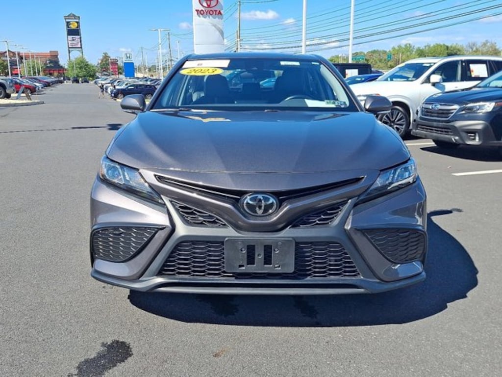 Priced below KBB Fair Purchase Price!CARFAX One-Owner, Non-Smoker, Black w/Sport SofTex Seat Trim w/Fabric Inserts, 4-Wheel Disc Brakes, 8.0J x 18" Alloy Wheels, ABS brakes, Active Cruise Control, AM/FM radio: SiriusXM, Apple CarPlay/Android Auto, Auto High-beam Headlights, Automatic temperature control, Brake assist, Dual front impact airbags, Dual front side impact airbags, Electronic Stability Control, Emergency communication system: Safety Connect (1-year trial), Exterior Parking Camera Rear, Front Bucket Seats, Front dual zone A/C, Fully automatic headlights, Heated door mirrors, Illuminated entry, Knee airbag, Leather steering wheel, Low tire pressure warning, Occupant sensing airbag, Outside temperature display, Overhead airbag, Power driver seat, Rear side impact airbag, Remote keyless entry, Sport SofTex Seat Trim w/Fabric Inserts, Steering wheel mounted audio controls, Telescoping steering wheel, Tilt steering wheel, Traction control, Turn signal indicator mirrors. CARFAX One-Owner. Toyota Gold Certified Details:* Warranty Deductible: $0* Roadside Assistance* Limited Warranty: 12 Month/12,000 Mile Limited Comprehensive Warranty: 12 Month/12,000 Mile (whichever comes first) from certified purchase date* Transferable Warranty* Vehicle History* Powertrain Limited Warranty: 84 Month/100,000 Mile (whichever comes first) from TCUV purchase date* Roadside Assistance for 7 Year / 100,000 Mile. Standard New-Car Financing Rates Available. Warranty honored at over 1,400 Toyota dealers in the continental U.S. & Canada. Trade-ins accepted. Trouble-free handling of your transaction, including DMV paperwork* 160 Point InspectionCertified.Predawn Gray Mica 2023 Toyota Camry SE CERTIFIED FWD 8-Speed Automatic 2.5L I4 DOHC 16V28/39 City/Highway MPG