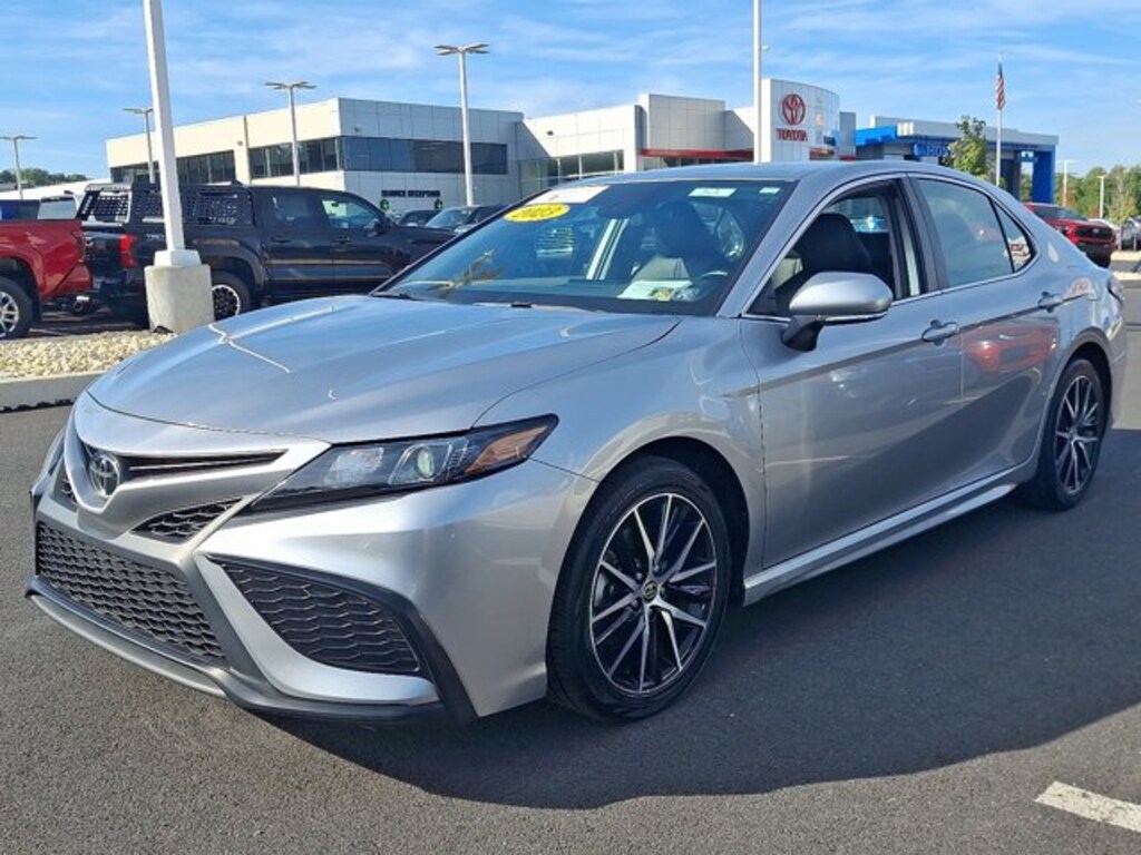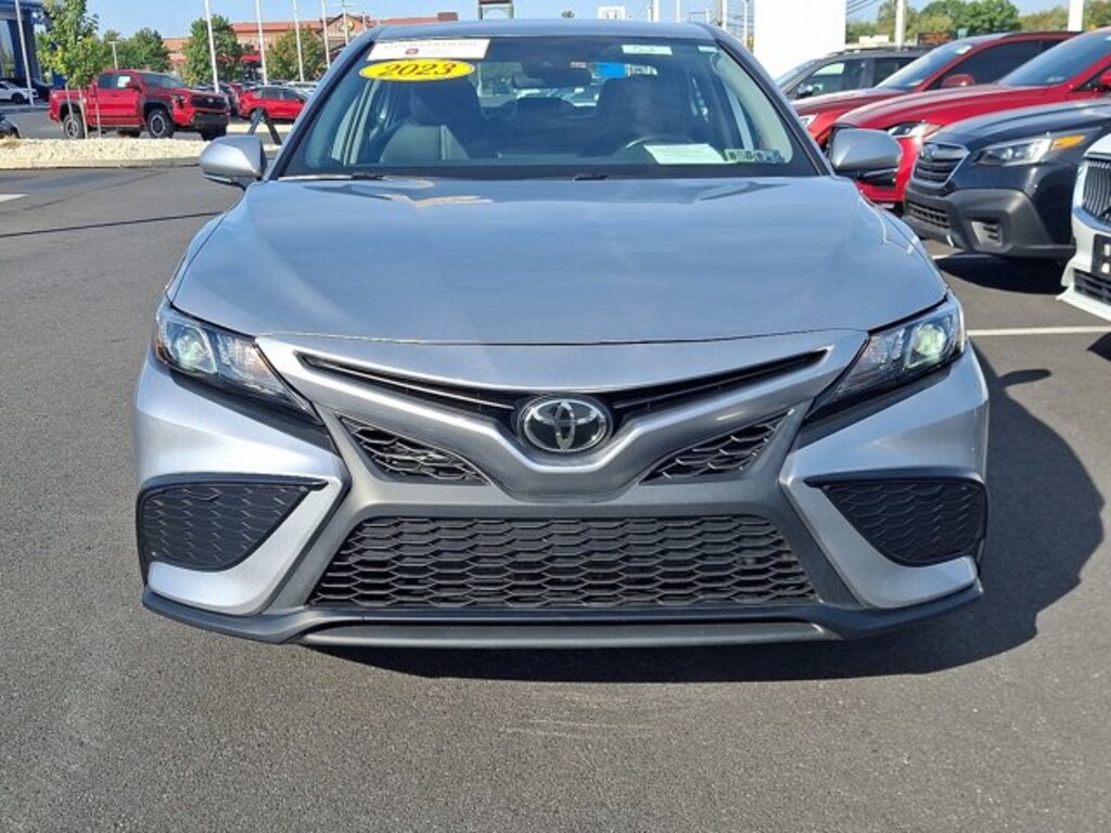 CARFAX One-Owner, Local Trade, Non-Smoker, Black w/Sport SofTex Seat Trim w/Fabric Inserts, 4-Wheel Disc Brakes, 8.0J x 18" Alloy Wheels, ABS brakes, Active Cruise Control, AM/FM radio: SiriusXM, Apple CarPlay/Android Auto, Auto High-beam Headlights, Automatic temperature control, Dual front impact airbags, Dual front side impact airbags, Electronic Stability Control, Emergency communication system: Safety Connect (1-year trial), Exterior Parking Camera Rear, Front dual zone A/C, Fully automatic headlights, Heated door mirrors, Illuminated entry, Knee airbag, Leather steering wheel, Low tire pressure warning, Occupant sensing airbag, Outside temperature display, Overhead airbag, Power driver seat, Rear side impact airbag, Remote keyless entry, Sport SofTex Seat Trim w/Fabric Inserts, Steering wheel mounted audio controls, Telescoping steering wheel, Tilt steering wheel, Traction control, Turn signal indicator mirrors. CARFAX One-Owner. Toyota Certified Used Hybrids Details:* Vehicle History* 160 Point Inspection* Powertrain Limited Warranty: 84 Month/100,000 Mile (whichever comes first) from TCUV purchase date* Warranty Deductible: $0* Transferable Warranty* HV Battery Warranty coverage for 10 years/150,000 miles. (2020 model year forward Hybrid-Related) 8 years/100,000 miles, whichever comes first, from original date of first use when sold as new. Fuel Cell Vehicle Warranty 8 years/100,000 mile (whichever comes first) on key fuel cell components. Roadside Assistance for 7 Year / 100,000 Mile* Limited Warranty: 12 Month/12,000 Mile Limited Comprehensive Warranty: 12 Month/12,000 Mile (whichever comes first) from certified purchase date* Roadside AssistanceCertified.Celestial Silver Metallic 2023 Toyota Camry SE CERTIFIED FWD 8-Speed Automatic 2.5L I4 DOHC 16V28/39 City/Highway MPG