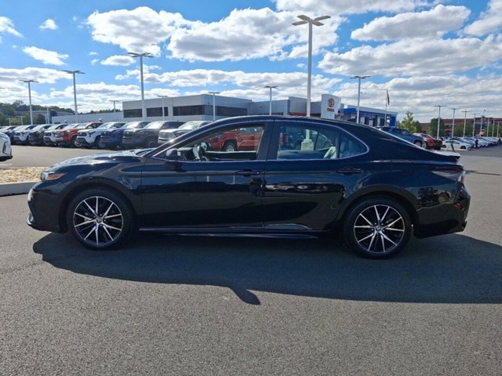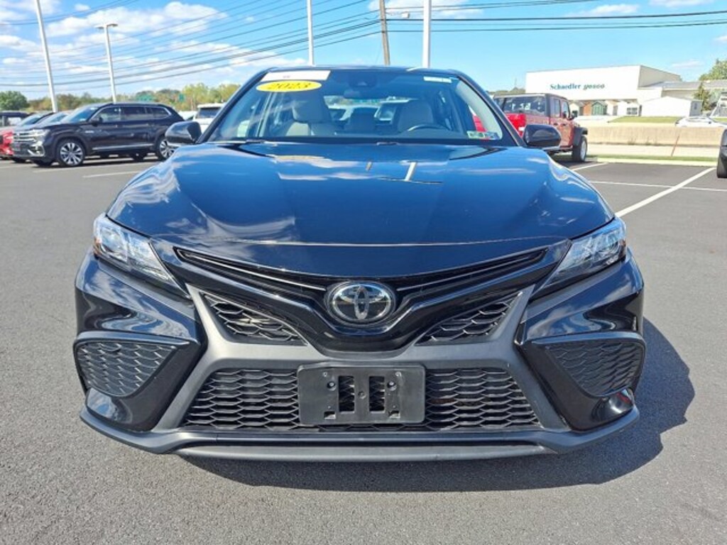 CARFAX One-Owner, Non-Smoker, Black w/Sport SofTex Seat Trim w/Fabric Inserts, 4-Wheel Disc Brakes, 8.0J x 18" Alloy Wheels, ABS brakes, Active Cruise Control, AM/FM radio: SiriusXM, Apple CarPlay/Android Auto, Dual front impact airbags, Dual front side impact airbags, Electronic Stability Control, Emergency communication system: Safety Connect (1-year trial), Exterior Parking Camera Rear, Front Bucket Seats, Front dual zone A/C, Fully automatic headlights, Heated door mirrors, Illuminated entry, Knee airbag, Leather steering wheel, Low tire pressure warning, Occupant sensing airbag, Outside temperature display, Overhead airbag, Power door mirrors, Rear side impact airbag, Remote keyless entry, Sport SofTex Seat Trim w/Fabric Inserts, Telescoping steering wheel, Tilt steering wheel, Traction control, Turn signal indicator mirrors. CARFAX One-Owner. Certified.Midnight Black Metallic 2023 Toyota Camry SE CERTIFIED FWD 8-Speed Automatic 2.5L I4 DOHC 16VRecent Arrival! 28/39 City/Highway MPGToyota Gold Certified Details:* Limited Warranty: 12 Month/12,000 Mile Limited Comprehensive Warranty: 12 Month/12,000 Mile (whichever comes first) from certified purchase date* Roadside Assistance for 7 Year / 100,000 Mile. Standard New-Car Financing Rates Available. Warranty honored at over 1,400 Toyota dealers in the continental U.S. & Canada. Trade-ins accepted. Trouble-free handling of your transaction, including DMV paperwork* 160 Point Inspection* Warranty Deductible: $0* Powertrain Limited Warranty: 84 Month/100,000 Mile (whichever comes first) from TCUV purchase date* Transferable Warranty* Vehicle History* Roadside Assistance
