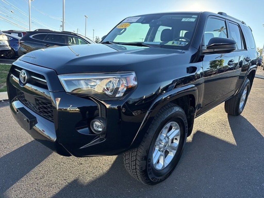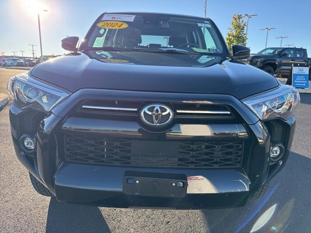 CARFAX One-Owner, Non-Smoker, 4WD, Black/Graphite w/Fabric Seat Trim, 17" 6-Spoke Alloy Wheels, 4-Wheel Disc Brakes, 8 Speakers, ABS brakes, Active Cruise Control, Anti-whiplash front head restraints, Apple CarPlay/Android Auto, Auto High-beam Headlights, Brake assist, Dual front impact airbags, Dual front side impact airbags, Electronic Stability Control, Emergency communication system: Safety Connect (1-year trial), Exterior Parking Camera Rear, Fabric-Trimmed 50/50 Split Fold-Flat 3rd Row, Front wheel independent suspension, Illuminated entry, Knee airbag, Leather steering wheel, Low tire pressure warning, Occupant sensing airbag, Outside temperature display, Overhead airbag, Power door mirrors, Power driver seat, Split folding rear seat, Steering wheel mounted audio controls, Telescoping steering wheel, Tilt steering wheel, Trunk Carpet. CARFAX One-Owner. Certified.Midnight Black Metallic 2024 Toyota 4Runner SR5 CERTIFIED 4WD Automatic 4.0L V6 DOHC 24VRecent Arrival! Odometer is 8405 miles below market average!Toyota Gold Certified Details:* Warranty Deductible: $0* Vehicle History* Powertrain Limited Warranty: 84 Month/100,000 Mile (whichever comes first) from TCUV purchase date* Transferable Warranty* 160 Point Inspection* Roadside Assistance for 7 Year / 100,000 Mile. Standard New-Car Financing Rates Available. Warranty honored at over 1,400 Toyota dealers in the continental U.S. & Canada. Trade-ins accepted. Trouble-free handling of your transaction, including DMV paperwork* Limited Warranty: 12 Month/12,000 Mile Limited Comprehensive Warranty: 12 Month/12,000 Mile (whichever comes first) from certified purchase date* Roadside Assistance