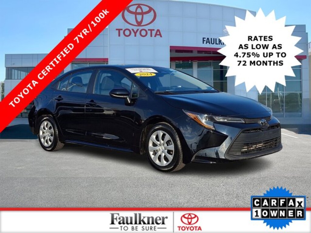 AM/FM radio: SiriusXM, Auto High-beam Headlights, Automatic temperature control, Radio: 8" Toyota Audio Multimedia, Remote keyless entry. CARFAX One-Owner. Certification Program Details: Toyota Gold Certified Details: * 160 Point Inspection * Powertrain Limited Warranty: 84 Month/100,000 Mile (whichever comes first) from TCUV purchase date * Limited Warranty: 12 Month/12,000 Mile Limited Comprehensive Warranty: 12 Month/12,000 Mile (whichever comes first) from certified purchase date * Roadside Assistance for 7 Year / 100,000 Mile * Warranty Deductible: $0 * Transferable Warranty *Warranty Honored at Over 1,400 Toyota Dealers in the Continental U.S. and Canada Certified.Midnight Black Metallic 2024 Toyota Corolla LE CERTIFIED FWD CVT 2.0L I4 DOHC 16V32/41 City/Highway MPG