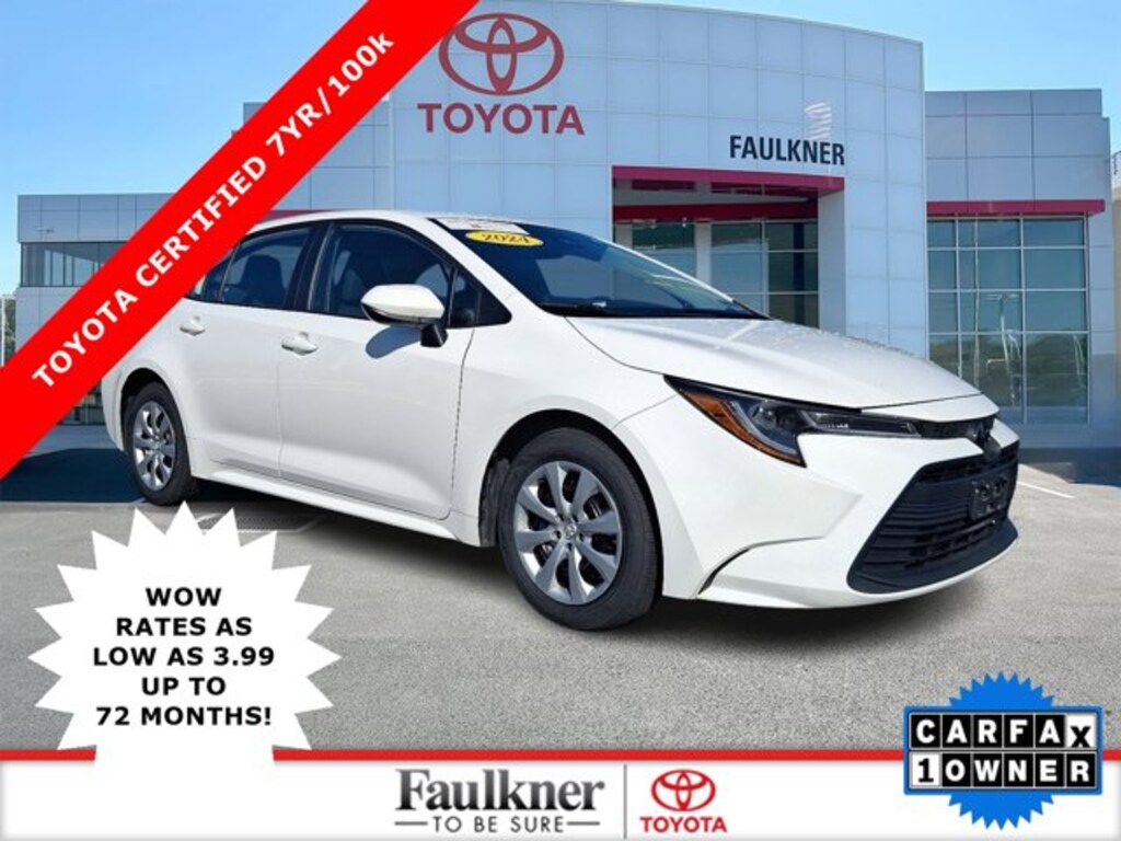 CARFAX One-Owner, 16" Steel Wheels w/Covers, 4-Wheel Disc Brakes, ABS brakes, Auto High-beam Headlights, Brake assist, Dual front impact airbags, Dual front side impact airbags, Electronic Stability Control, Emergency communication system: Safety Connect (up to 10-year trial subscription), Exterior Parking Camera Rear, Front Bucket Seats, Front wheel independent suspension, Illuminated entry, Knee airbag, Low tire pressure warning, Occupant sensing airbag, Overhead airbag, Radio: 8" Toyota Audio Multimedia, Rear side impact airbag, Remote keyless entry, Speed control. CARFAX One-Owner. Toyota Gold Certified Details:* Roadside Assistance for 7 Year / 100,000 Mile. Standard New-Car Financing Rates Available. Warranty honored at over 1,400 Toyota dealers in the continental U.S. & Canada. Trade-ins accepted. Trouble-free handling of your transaction, including DMV paperwork* Limited Warranty: 12 Month/12,000 Mile Limited Comprehensive Warranty: 12 Month/12,000 Mile (whichever comes first) from certified purchase date* Transferable Warranty* 160 Point Inspection* Powertrain Limited Warranty: 84 Month/100,000 Mile (whichever comes first) from TCUV purchase date* Roadside Assistance* Warranty Deductible: $0* Vehicle HistoryCertified.Ice Cap 2024 Toyota Corolla LE CERTIFIED FWD CVT 2.0L I4 DOHC 16V32/41 City/Highway MPG