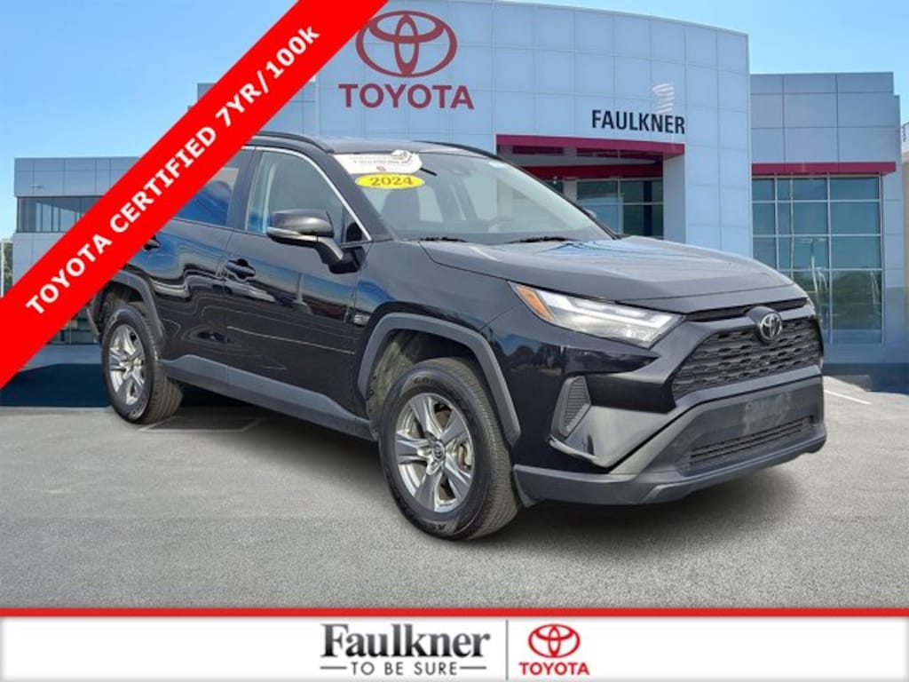 CARFAX One-Owner, Non-Smoker, AWD, Black w/Fabric Seat Trim, 4-Wheel Disc Brakes, ABS brakes, Automatic temperature control, Brake assist, Dual front impact airbags, Dual front side impact airbags, Electronic Stability Control, Emergency communication system: Safety Connect (10-year trial), Exterior Parking Camera Rear, Four wheel independent suspension, Front dual zone A/C, Heated door mirrors, Knee airbag, Occupant sensing airbag, Overhead airbag, Power door mirrors, Power driver seat, Speed control, Speed-sensing steering, Split folding rear seat, Steering wheel mounted audio controls, Tachometer, Tilt steering wheel, Traction control, Wheels: 17" 5-Spoke Silver Alloy. CARFAX One-Owner. Toyota Gold Certified Details:* 160 Point Inspection* Vehicle History* Warranty Deductible: $0* Transferable Warranty* Roadside Assistance for 7 Year / 100,000 Mile. Standard New-Car Financing Rates Available. Warranty honored at over 1,400 Toyota dealers in the continental U.S. & Canada. Trade-ins accepted. Trouble-free handling of your transaction, including DMV paperwork* Powertrain Limited Warranty: 84 Month/100,000 Mile (whichever comes first) from TCUV purchase date* Limited Warranty: 12 Month/12,000 Mile Limited Comprehensive Warranty: 12 Month/12,000 Mile (whichever comes first) from certified purchase date* Roadside AssistanceCertified.Midnight Black Metallic 2024 Toyota RAV4 XLE CERTIFIED AWD Automatic 2.5L 4-Cylinder DOHC Dual VVT-iRecent Arrival! 27/33 City/Highway MPG