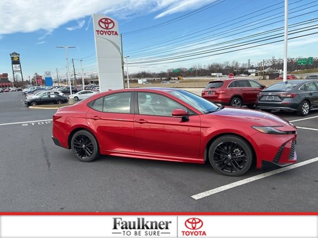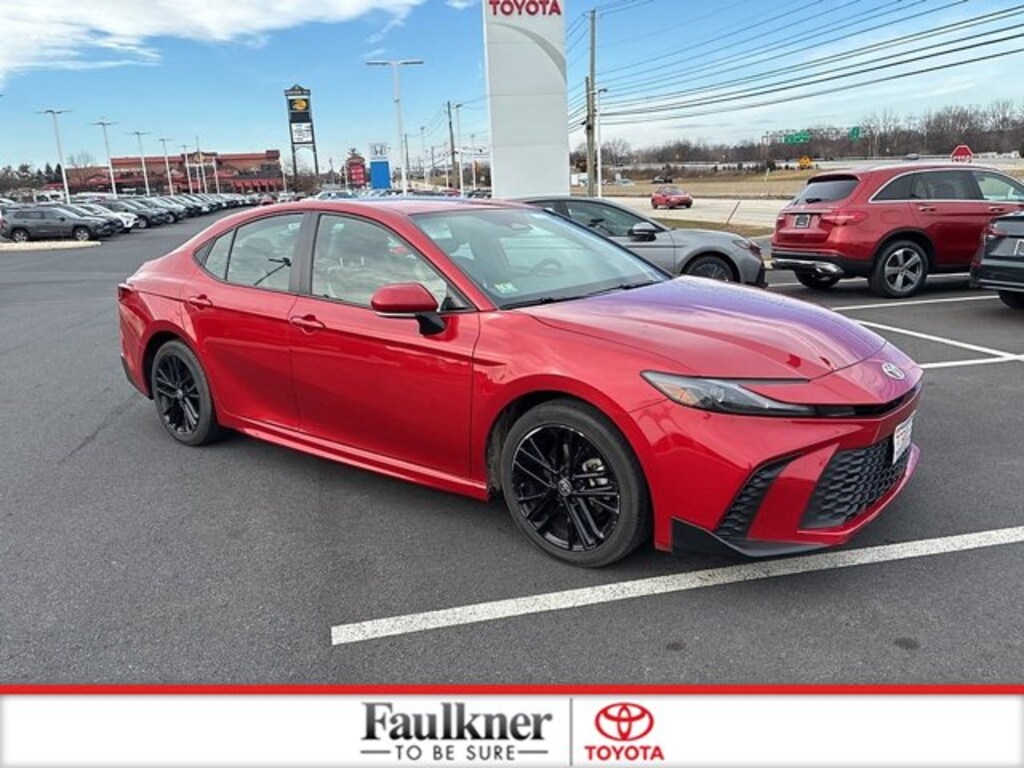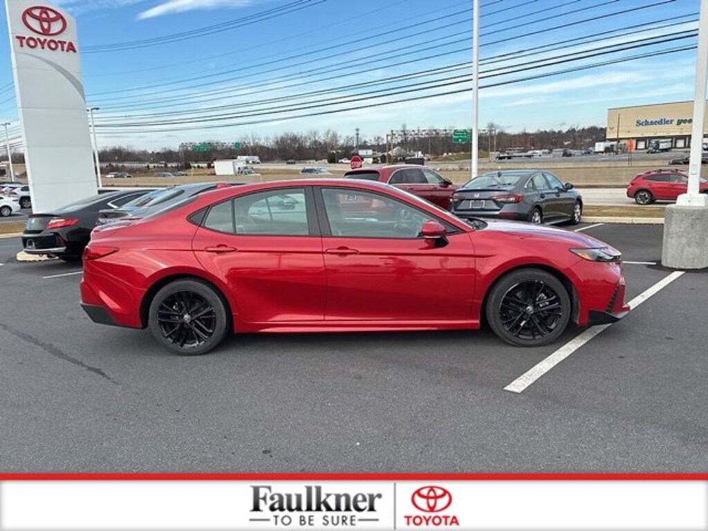 New Price! Priced below KBB Fair Purchase Price!CARFAX One-Owner, Non-Smoker, 2.5L 4-Cylinder 16V DOHC, Black w/SofTex & Fabric Seat Trim, 4-Wheel Disc Brakes, ABS brakes, Apple CarPlay/Android Auto, Automatic temperature control, Brake assist, Dual front impact airbags, Dual front side impact airbags, Electronic Stability Control, Emergency communication system: Safety Connect (up to 10-year trial subscription), Exterior Parking Camera Rear, Four wheel independent suspension, Front anti-roll bar, Front dual zone A/C, Heated door mirrors, Knee airbag, Low tire pressure warning, Occupant sensing airbag, Overhead airbag, Power door mirrors, Power driver seat, Radio: Toyota Audio Multimedia w/8" Touchscreen, Rear anti-roll bar, Rear side impact airbag, SofTex & Fabric Seat Trim, Speed control, Speed-sensing steering, Steering wheel mounted audio controls, Telescoping steering wheel, Tilt steering wheel, Traction control, Wheels: 18" Black-Finished Alloy. CARFAX One-Owner. Toyota Gold Certified Details:* 160 Point Inspection* Roadside Assistance* Limited Warranty: 12 Month/12,000 Mile Limited Comprehensive Warranty: 12 Month/12,000 Mile (whichever comes first) from certified purchase date* Transferable Warranty* Vehicle History* Roadside Assistance for 7 Year / 100,000 Mile. Standard New-Car Financing Rates Available. Warranty honored at over 1,400 Toyota dealers in the continental U.S. & Canada. Trade-ins accepted. Trouble-free handling of your transaction, including DMV paperwork* Powertrain Limited Warranty: 84 Month/100,000 Mile (whichever comes first) from TCUV purchase date* Warranty Deductible: $0Certified.Supersonic Red 2025 Toyota Camry SE CERTIFIED FWD eCVT 2.5L 4-Cylinder 16V DOHCRecent Arrival! 48/47 City/Highway MPG
