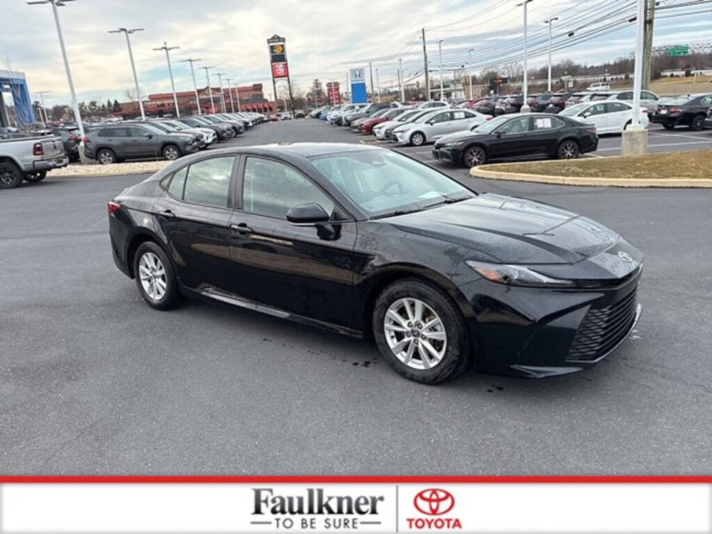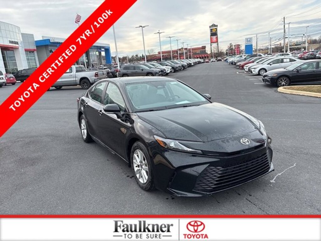CARFAX One-Owner, Non-Smoker, 2.5L 4-Cylinder 16V DOHC, Black w/Fabric Seat Trim, 4-Wheel Disc Brakes, ABS brakes, Apple CarPlay/Android Auto, Automatic temperature control, Brake assist, Dual front impact airbags, Dual front side impact airbags, Electronic Stability Control, Emergency communication system: Safety Connect (up to 10-year trial subscription), Exterior Parking Camera Rear, Four wheel independent suspension, Front anti-roll bar, Front dual zone A/C, Heated door mirrors, Knee airbag, Low tire pressure warning, Occupant sensing airbag, Overhead airbag, Power steering, Radio: Toyota Audio Multimedia w/8" Touchscreen, Rear anti-roll bar, Rear side impact airbag, Speed control, Speed-sensing steering, Steering wheel mounted audio controls, Traction control, Wheels: 16" Silver-Finished Alloy. CARFAX One-Owner. Toyota Gold Certified Details:* Roadside Assistance for 7 Year / 100,000 Mile. Standard New-Car Financing Rates Available. Warranty honored at over 1,400 Toyota dealers in the continental U.S. & Canada. Trade-ins accepted. Trouble-free handling of your transaction, including DMV paperwork* Vehicle History* Roadside Assistance* Transferable Warranty* Powertrain Limited Warranty: 84 Month/100,000 Mile (whichever comes first) from TCUV purchase date* Warranty Deductible: $0* Limited Warranty: 12 Month/12,000 Mile Limited Comprehensive Warranty: 12 Month/12,000 Mile (whichever comes first) from certified purchase date* 160 Point InspectionCertified.Midnight Black Metallic 2025 Toyota Camry LE CERTIFIED FWD eCVT 2.5L 4-Cylinder 16V DOHCRecent Arrival! 53/50 City/Highway MPG