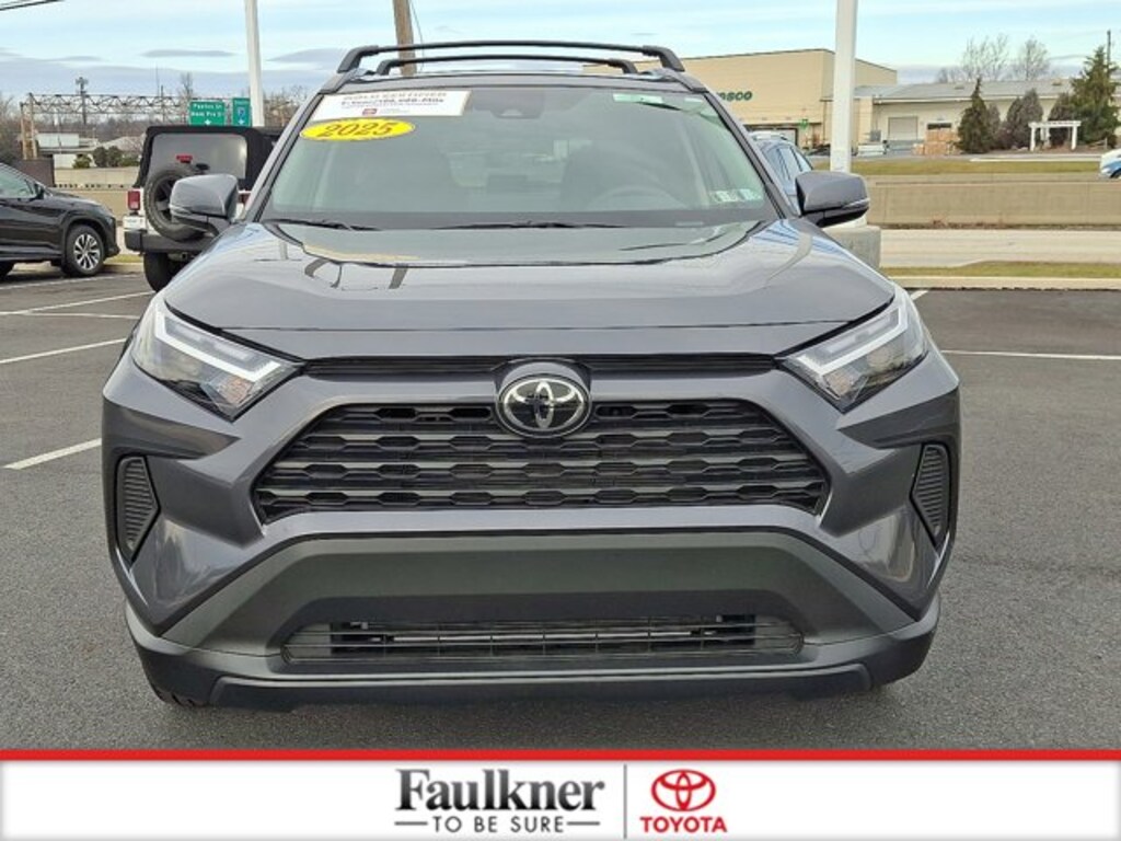 Priced below KBB Fair Purchase Price!CARFAX One-Owner, Local Trade, Non-Smoker, AWD, Ash w/Fabric Seat Trim, 3 Spoke Leather Heated Steering Wheel, 4-Wheel Disc Brakes, ABS brakes, Automatic temperature control, Brake assist, Convenience Package, Dual front impact airbags, Dual front side impact airbags, Electronic Stability Control, Emergency communication system: Safety Connect (10-year trial), Exterior Parking Camera Rear, Four wheel independent suspension, Front Door Smart Key System w/Push Button Start, Front Seat Heating, Heated door mirrors, Knee airbag, Low tire pressure warning, Occupant sensing airbag, Overhead airbag, Power door mirrors, Power driver seat, Radio: AM/FM/XM Audio System, Speed control, Speed-sensing steering, Split folding rear seat, Steering wheel mounted audio controls, Telescoping steering wheel, Tilt & Slide Moon Roof, Tilt steering wheel, Traction control, Weather Package, Wheels: 17" 5-Spoke Silver Alloy. CARFAX One-Owner. Toyota Gold Certified Details:* Powertrain Limited Warranty: 84 Month/100,000 Mile (whichever comes first) from TCUV purchase date* Roadside Assistance for 7 Year / 100,000 Mile. Standard New-Car Financing Rates Available. Warranty honored at over 1,400 Toyota dealers in the continental U.S. & Canada. Trade-ins accepted. Trouble-free handling of your transaction, including DMV paperwork* Warranty Deductible: $0* 160 Point Inspection* Vehicle History* Transferable Warranty* Limited Warranty: 12 Month/12,000 Mile Limited Comprehensive Warranty: 12 Month/12,000 Mile (whichever comes first) from certified purchase date* Roadside AssistanceCertified.Magnetic Gray Metallic 2025 Toyota RAV4 XLE CERTIFIED AWD Automatic 2.5L 4-Cylinder DOHC Dual VVT-iRecent Arrival! Odometer is 2490 miles below market average! 27/33 City/Highway MPG