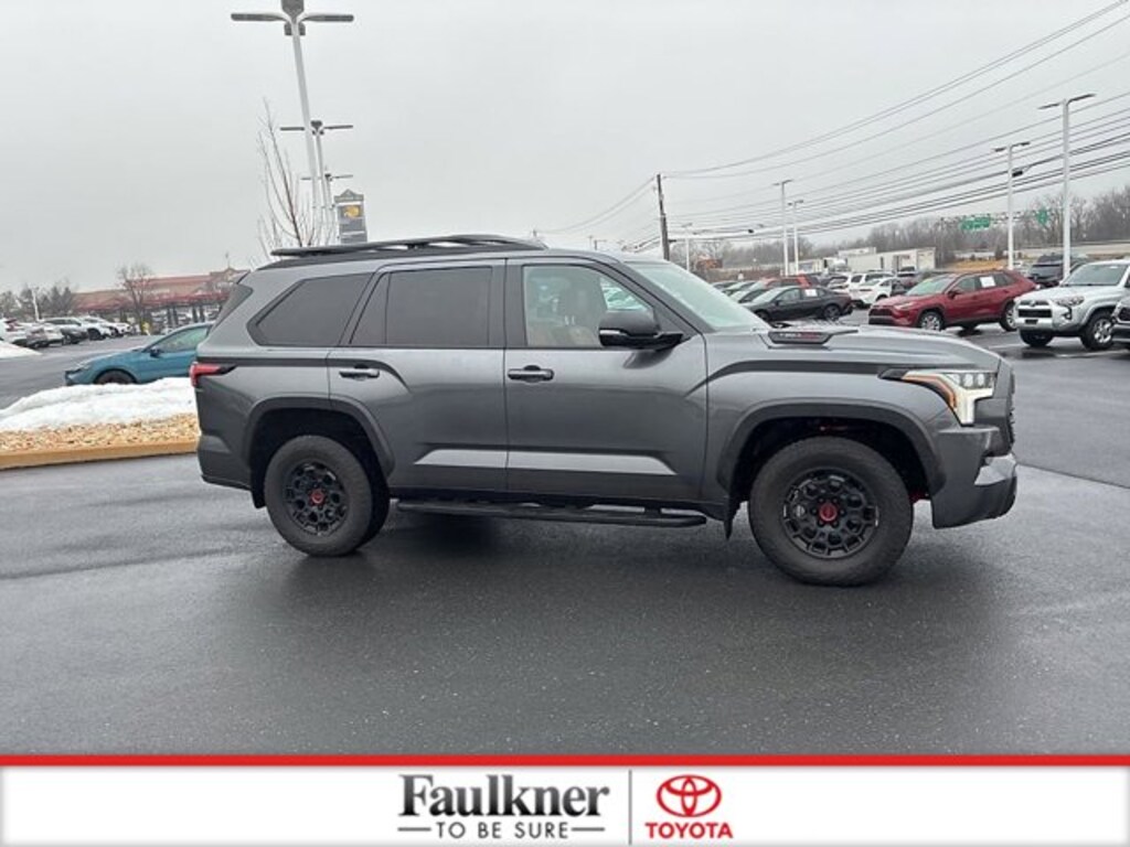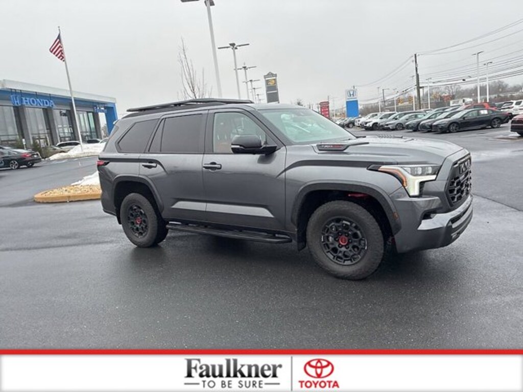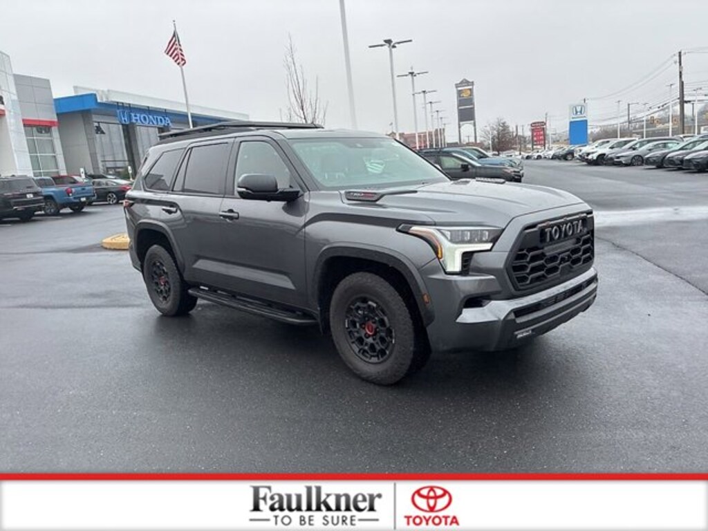 Priced below KBB Fair Purchase Price!CARFAX One-Owner, Local Trade, Non-Smoker, V6 Hybrid, 10-Speed Automatic, 4WD, 3rd row seats: split-bench, 4-Wheel Disc Brakes, ABS brakes, Anti-whiplash front head restraints, Apple CarPlay/Android Auto, Auto-dimming door mirrors, Auto-dimming Rear-View mirror, Automatic temperature control, Brake assist, Dual front impact airbags, Dual front side impact airbags, Electronic Stability Control, Emergency communication system: Safety Connect (10-year trial), Exterior Parking Camera Rear, Front anti-roll bar, Front dual zone A/C, Front fog lights, Front wheel independent suspension, Garage door transmitter: HomeLink, Heated & Ventilated Front Seats, Heated door mirrors, Heated front seats, Knee airbag, Low tire pressure warning, Memory seat, Navigation system: Drive Connect (1 year trial) includes Cloud Navigation with real time traffic and Google POI, Occupant sensing airbag, Overhead airbag, Power driver seat, Power Liftgate, Power moonroof, Power passenger seat, Premium audio system: JBL, Radio: 14" Toyota Audio Multimedia w/JBL Prem Aud, Rear air conditioning, Reclining 3rd row seat, Speed control, Speed-sensing steering, Split folding rear seat, Sport steering wheel, Steering wheel mounted audio controls, Traction control, TRD Pro Package, TRD Pro SofTex Seat Trim, Ventilated front seats, Wheels: 18" TRD Pro Forged-Aluminum BBS. CARFAX One-Owner. Toyota Gold Certified Details:* 160 Point Inspection* Warranty Deductible: $0* Limited Warranty: 12 Month/12,000 Mile Limited Comprehensive Warranty: 12 Month/12,000 Mile (whichever comes first) from certified purchase date* Roadside Assistance for 7 Year / 100,000 Mile. Standard New-Car Financing Rates Available. Warranty honored at over 1,400 Toyota dealers in the continental U.S. & Canada. Trade-ins accepted. Trouble-free handling of your transaction, including DMV paperwork* Powertrain Limited Warranty: 84 Month/100,000 Mile (whichever comes first) from TCUV purchase date* Transferable Warranty* Roadside Assistance* Vehicle HistoryCertified.Magnetic Gray Metallic 2025 Toyota Sequoia TRD Pro CERTIFIED 4WD 10-Speed Automatic V6 HybridRecent Arrival! Odometer is 1328 miles below market average!