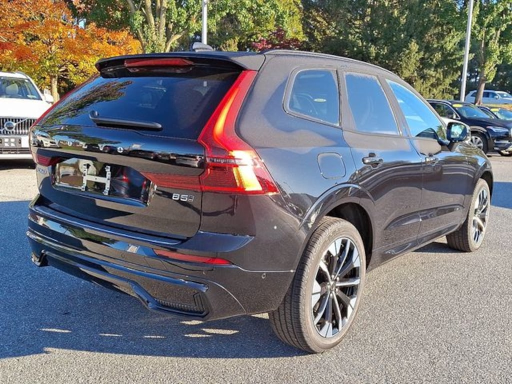 Onyx Black Metallic This XC60 B5 Plus is nicely equipped with Climate Package (Heated Rear Seats and Heated Steering Wheel), Protection Package Premier (All-Weather Floor Mats, Bumper Cover, Cargo Tray, First Aid Kit, and Wheel Locks), 10 Speakers, 4-Wheel Disc Brakes, ABS brakes, Air Conditioning, Alloy wheels, AM/FM radio: SiriusXM, Anti-whiplash front head restraints, Auto High-beam Headlights, Auto-dimming door mirrors, Auto-dimming Rear-View mirror, Automatic temperature control, Brake assist, Bumpers: body-color, Delay-off headlights, Driver door bin, Driver vanity mirror, Dual front impact airbags, Dual front side impact airbags, Electronic Stability Control, Emergency communication system: Volvo Cars App w/4 Year Subscription, Exterior Parking Camera Rear, Four wheel independent suspension, Front anti-roll bar, Front Bucket Seats, Front Center Armrest, Front dual zone A/C, Front reading lights, Fully automatic headlights, Garage door transmitter: HomeLink, Heated door mirrors, Heated Front Bucket Seats, Heated front seats, Illuminated entry, Knee airbag, Leather Shift Knob, Low tire pressure warning, Memory seat, Nordico Upholstery, Occupant sensing airbag, Outside temperature display, Overhead airbag, Panic alarm, Passenger door bin, Passenger vanity mirror, Power door mirrors, Power driver seat, Power Liftgate, Power moonroof, Power passenger seat, Power steering, Power windows, Radio data system, Radio: High Performance Sound System, Rain sensing wipers, Rear anti-roll bar, Rear fog lights, Rear reading lights, Rear seat center armrest, Rear window defroster, Rear window wiper, Remote keyless entry, Security system, Speed control, Split folding rear seat, Spoiler, Steering wheel mounted audio controls, Tachometer, Telescoping steering wheel, Tilt steering wheel, Traction control, Trip computer, Turn signal indicator mirrors, Variably intermittent wipers, and Wheels: 20" 5-Y Spoke Diamond Cut Alloy.