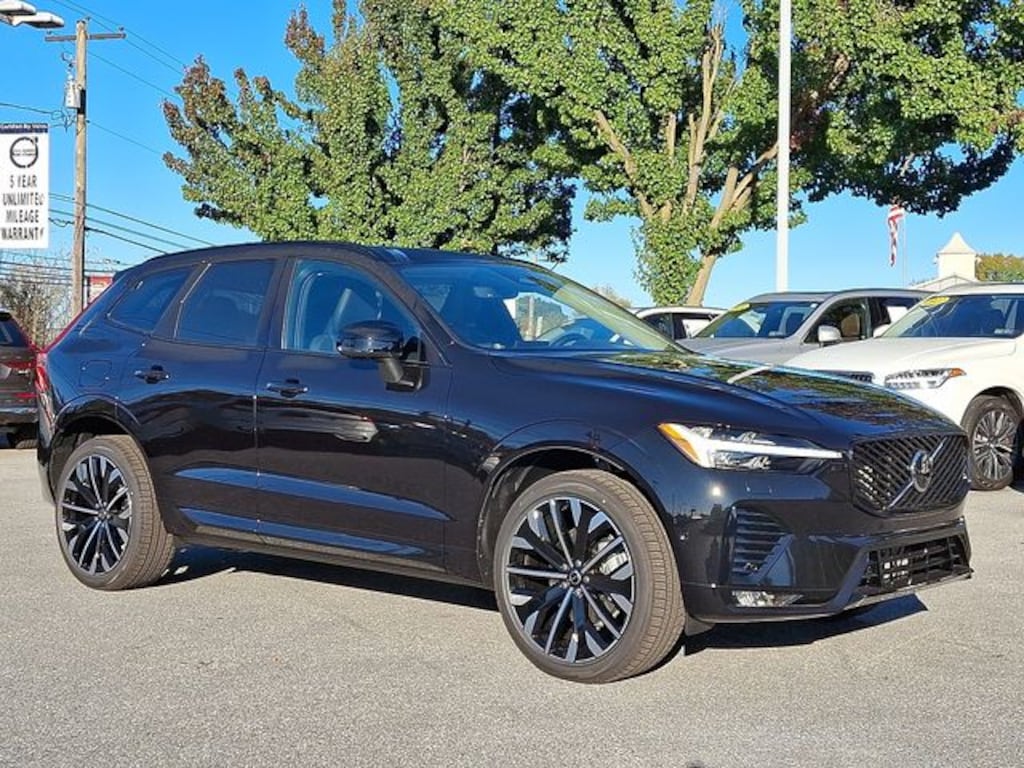 Onyx Black Metallic This XC60 B5 Ultra is nicely equipped with Climate Package (Heated Rear Seats and Heated Steering Wheel), Protection Package Premier (All-Weather Floor Mats, Bumper Cover, Cargo Tray, First Aid Kit, and Wheel Locks), 14 Speakers, 4-Wheel Disc Brakes, ABS brakes, Air Conditioning, Alloy wheels, AM/FM radio: SiriusXM, Anti-whiplash front head restraints, Auto High-beam Headlights, Auto-dimming door mirrors, Auto-dimming Rear-View mirror, Automatic temperature control, Brake assist, Bumpers: body-color, Delay-off headlights, Driver door bin, Driver vanity mirror, Dual front impact airbags, Dual front side impact airbags, Electronic Stability Control, Emergency communication system: Volvo Cars App w/4 Year Subscription, Exterior Parking Camera Rear, Four wheel independent suspension, Front anti-roll bar, Front Bucket Seats, Front Center Armrest, Front dual zone A/C, Front reading lights, Fully automatic headlights, Garage door transmitter: HomeLink, Genuine wood console insert, Genuine wood dashboard insert, harman/kardon® Speakers, Heads-Up Display, Heated and Ventilated Front Bucket Seats, Heated door mirrors, Heated front seats, Illuminated entry, Knee airbag, Leather steering wheel, Low tire pressure warning, Massage Front Seats, Memory seat, Navigation System, Occupant sensing airbag, Outside temperature display, Overhead airbag, Panic alarm, Passenger door bin, Passenger vanity mirror, Perforated Nappa Leather Upholstery, Power door mirrors, Power driver seat, Power Liftgate, Power moonroof, Power passenger seat, Power steering, Power windows, Radio data system, Radio: Harman/Kardon Premium Sound System, Rain sensing wipers, Rear air conditioning, Rear anti-roll bar, Rear dual zone A/C, Rear fog lights, Rear reading lights, Rear seat center armrest, Rear window defroster, Rear window wiper, Remote keyless entry, Security system, Speed control, Split folding rear seat, Spoiler, Steering wheel mounted audio controls, Tachometer, Telescoping steering wheel, Tilt steering wheel, Traction control, Trip computer, Turn signal indicator mirrors, Variably intermittent wipers, Ventilated front seats, and Wheels: 19" 5-V Spoke Diamond Cut Alloy.