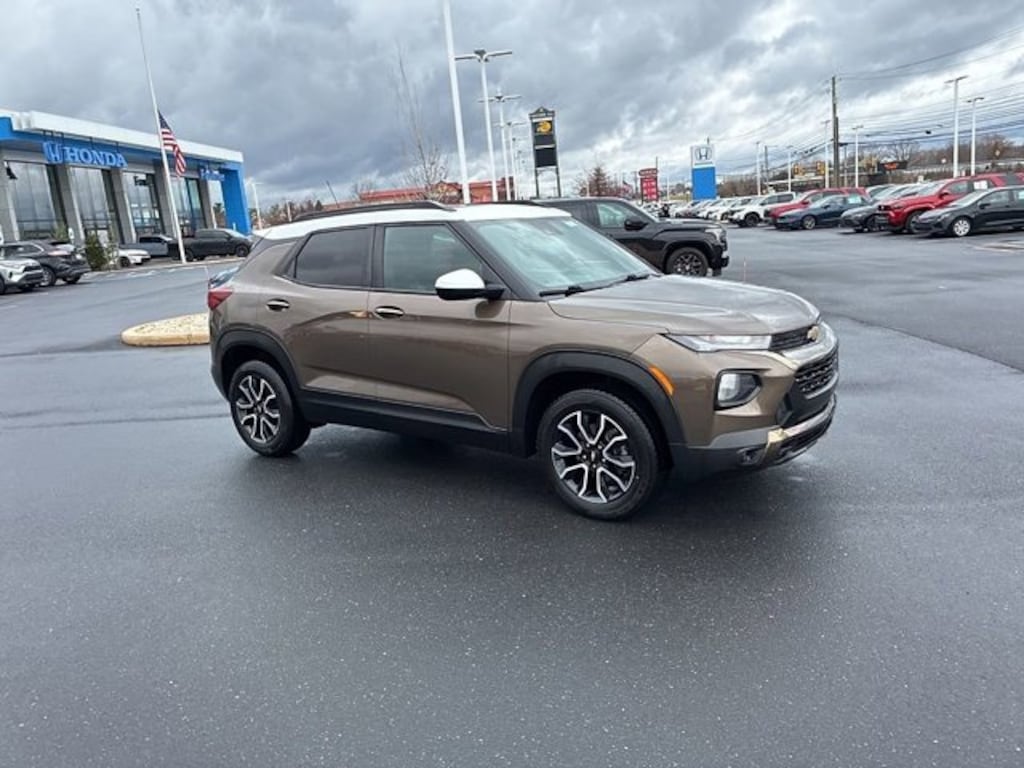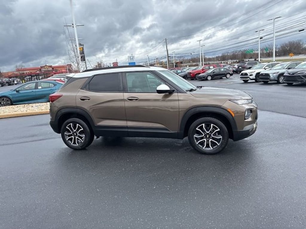 Priced below KBB Fair Purchase Price!CARFAX One-Owner, Local Trade, Non-Smoker, 1 Type-A & 1 Type-C USB Charging-Only Ports, 120-Volt Power Outlet, 2-Way Power Driver Lumbar Seat Adjuster, 4-Way Manual Front Passenger Seat Adjuster, 4-Wheel Disc Brakes, 4.2" Diagonal Multi-Color Driver Info Center, 6-Speaker Audio System Feature w/Amplifier, 8-Way Power Driver Seat Adjuster, 8" Diagonal Color Touchscreen Display, ABS brakes, Adaptive Cruise Control, Apple CarPlay/Android Auto, Bose Premium 7-Speaker Audio System Feature, Brake assist, Cabin Humidity Sensor, Convenience Package, Driver & Front Passenger Illuminated Vanity Mirrors, Driver Confidence Package, Dual front impact airbags, Dual front side impact airbags, Dual-Pane Panoramic Power Sunroof, Electronic Stability Control, Emergency communication system: OnStar and Chevrolet connected services capable, Exterior Parking Camera Rear, Flat-Folding Front Passenger Seatback, Front anti-roll bar, Front fog lights, Front wheel independent suspension, Hands-Free Power Programmable Liftgate, HD Radio, HD Rear Vision Camera, Heated door mirrors, Heated Driver & Front Passenger Seats, Heated front seats, Inside Rear-View Auto-Dimming Mirror, Knee airbag, Lane Change Alert w/Side Blind Zone Alert, Leather steering wheel, Leatherette Seat Trim, LED Headlamps, Low tire pressure warning, Memory Card Receptacle, Occupant sensing airbag, Overhead airbag, Power driver seat, Preferred Equipment Group 1SA, Radio: Chevrolet Infotainment 3 Plus System, Rear Cross Traffic Alert, Rear Park Assist, Rear side impact airbag, Ride & Handling Suspension, Single-Zone Auto Climate Control Air Conditioning, SiriusXM Radio, SiriusXM w/360L, Speed control, Split folding rear seat, Steering wheel mounted audio controls, Summit White Two-Tone Roof, Sun & Liftgate Package, Technology Package, Telescoping steering wheel, Tilt steering wheel, Traction control, Wheels: 17" High Gloss Black Machined Aluminum, Wireless Apple CarPlay/Android Auto, Wireless Charging. CARFAX One-Owner.Zeus Bronze Metallic 2021 Chevrolet TrailBlazer ACTIV AWD Automatic 1.3L Ecotec Turbo DOHC SIDI w/VVTRecent Arrival! Odometer is 3602 miles below market average! 26/30 City/Highway MPGAwards:* 2021 IIHS Top Safety Pick+ * Ward's 10 Best Engines and Propulsion Systems