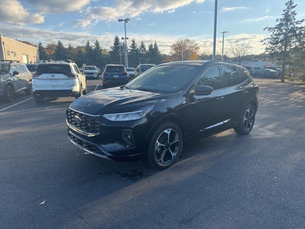 Recent Arrival! 2023 Ford Escape ST-Line Select Agate Black Metallic *Schedule a test Drive at your home or office*, *Non-Smoker*, AWD, 10-Way Power Driver's Seat, 12.3 Productivity Screen in Instrument Cluster, 360-Degree Camera w/Split View, 6-Way Power Passenger Seat, Automatic temperature control, Black Roof-Rack Side Rails, Body Color Mirrors, Brake assist, Class II Trailer Tow Package, Connected Built-In Navigation, Electronic Stability Control, Emergency communication system: SYNC 4 911 Assist, Equipment Group 401A, Exterior Parking Camera Rear, Ford Co-Pilot360 Assist 2.0, HD Radio, Heated steering wheel, Heated Vinyl/Cloth Front Sport Contour Bucket Seats, Intelligent Adaptive Cruise Control w/Stop-and-Go, Intersection Assist, Knee airbag, Memory Package, Neutral Towing Capability, Panoramic Vista Roof, Power driver seat, Power Liftgate, Radio: B&O Sound System by Bang & Olufsen, Rear Parking Sensor, Reverse Brake Assist, SecuriCode Keyless Entry Keypad, Speed Sign Recognition, SYNC 4 w/Enhanced Voice Recognition, Tech Pack #2, Traction control, Wheels: 19 Machined-Face Ebony-Painted Aluminum, Wireless Charging Pad, 2.91 Axle Ratio, 4-Wheel Disc Brakes, 6 Speakers, ABS brakes, Air Conditioning, AM/FM radio: SiriusXM, AM/FM Stereo, Auto High-beam Headlights, Bumpers: body-color, Compass, Delay-off headlights, Driver door bin, Driver vanity mirror, Dual front impact airbags, Dual front side impact airbags, Electronic Fuel Door Release, FordPass Connect, Four wheel independent suspension, Front anti-roll bar, Front Bucket Seats, Front Center Armrest, Front dual zone A/C, Front fog lights, Front reading lights, Fully automatic headlights, Heated door mirrors, Heated front seats, Illuminated entry, Low tire pressure warning, Occupant sensing airbag, Outside temperature display, Overhead airbag, Overhead console, Panic alarm, Passenger door bin, Passenger vanity mirror, Pedestrian Alert Sounder, Power door mirrors, Power steering, Power windows, Radio data system, Rear anti-roll bar, Rear reading lights, Rear seat center armrest, Rear window defroster, Rear window wiper, Remote keyless entry, Speed control, Speed-sensing steering, Speed-Sensitive Wipers, Split folding rear seat, Spoiler, Sport steering wheel, Steering wheel mounted audio controls, SYNC 4, Tachometer, Telescoping steering wheel, Tilt steering wheel, Trip computer, Variably intermittent wipers, AWD, 10-Way Power Driver's Seat, 12.3 Productivity Screen in Instrument Cluster, 360-Degree Camera w/Split View, 6-Way Power Passenger Seat, Automatic temperature control, Black Roof-Rack Side Rails, Body Color Mirrors, Brake assist, Class II Trailer Tow Package, Connected Built-In Navigation, Electronic Stability Control, Emergency communication system: SYNC 4 911 Assist, Equipment Group 401A, Exterior Parking Camera Rear, Ford Co-Pilot360 Assist 2.0, HD Radio, Heated steering wheel, Heated Vinyl/Cloth Front Sport Contour Bucket Seats, Intelligent Adaptive Cruise Control w/Stop-and-Go, Intersection Assist, Knee airbag, Memory Package, Neutral Towing Capability, Panoramic Vista Roof, Power driver seat, Power Liftgate, Radio: B&O Sound System by Bang & Olufsen, Rear Parking Sensor, Reverse Brake Assist, SecuriCode Keyless Entry Keypad, Speed Sign Recognition, SYNC 4 w/Enhanced Voice Recognition, Tech Pack #2, Traction control, Wheels: 19 Machined-Face Ebony-Painted Aluminum, Wireless Charging Pad.