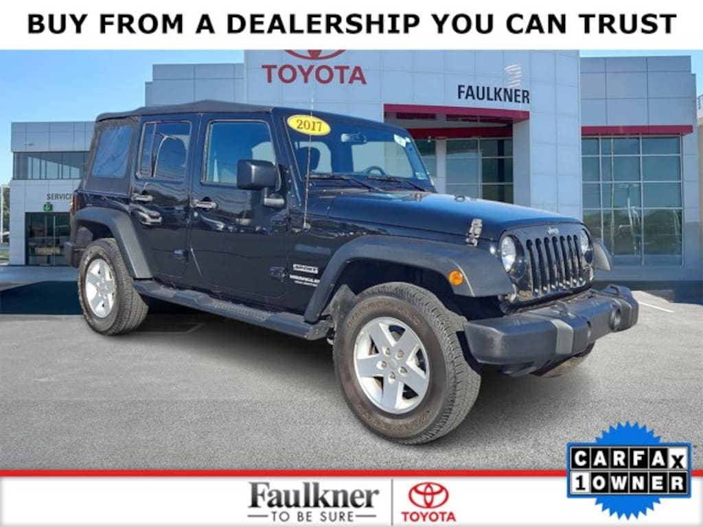Priced below KBB Fair Purchase Price!CARFAX One-Owner, Local Trade, Non-Smoker, 1-Yr SiriusXM Radio Service, 17" x 7.5" Aluminum Wheels, 3.21 Rear Axle Ratio, 4-Wheel Disc Brakes, ABS brakes, Auto-Dimming Mirror w/Reading Lamp, Chrome/Leather Wrapped Shift Knob, Class II Receiver Hitch, Connectivity Group, Deep Tint Sunscreen Windows, Dual front impact airbags, Front 1-Touch Down Power Windows, Front Bucket Seats, Leather Wrapped Steering Wheel, Low tire pressure warning, Occupant sensing airbag, Power Convenience Group, Power Heated Mirrors, Power Locks, Quick Order Package 23S, Remote Keyless Entry, Remote USB Port, Security Alarm, SIRIUS Satellite Radio, Split folding rear seat, Tilt steering wheel, Tire Pressure Monitoring Display, Trailer Tow Group, Trailer Tow w/4-Pin Connector Wiring, Tubular Side Steps, Uconnect Voice Command w/Bluetooth, Vehicle Information Center. CARFAX One-Owner.Black Clearcoat 2017 Jeep Wrangler Unlimited Sport 4WD Manual 3.6L V6 24V VVTOdometer is 9485 miles below market average!Awards:* 2017 KBB.com 10 Most Awarded Brands