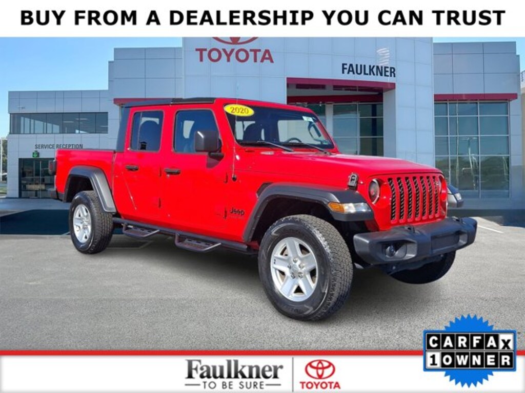 Priced below KBB Fair Purchase Price!CARFAX One-Owner, Local Trade, Non-Smoker, 4-Wheel Disc Brakes, 4.10 Rear Axle Ratio, ABS brakes, Air Conditioning w/Auto Temperature Control, Anti-Lock 4-Wheel Disc Heavy Duty Brakes, Anti-Spin Differential Rear Axle, Apple CarPlay, Automatic Headlamps, Cloth Low-Back Bucket Seats, Cluster 7.0" TFT Color Display, Cold Weather Group, Convenience Group, Dana M210 Wide Front Axle, Dana M220 Wide Rear Axle, Daytime Running Lamp System, Deep Tint Sunscreen Windows, Dual front impact airbags, Dual front side impact airbags, Front 1-Touch Down Power Windows, Google Android Auto, GVWR: 6,250 lbs w/Max Tow Package, Hardtop Headliner, Heated Front Seats, Heated Steering Wheel, Integrated roll-over protection, Leather Wrapped Steering Wheel, Low tire pressure warning, Max Tow Package w/4.10 Axle Ratio, Molded-In-Color Fender Flares (2-Piece), Normal Duty Plus Suspension, Occupant sensing airbag, Outside temperature display, ParkView Rear Back-Up Camera, Power Heated Mirrors, Power Tailgate Lock, Quick Order Package 24S, Radio: Uconnect 4 w/7" Display, Remote Keyless Entry, Security Alarm, Speed Sensitive Power Locks, Split folding rear seat, Sun Visors w/Illuminated Vanity Mirrors, Telescoping steering wheel, Tilt steering wheel, Universal Garage Door Opener, Wheels: 17" x 7.5" Tech Silver Aluminum. CARFAX One-Owner.Firecracker Red Clearcoat 2020 Jeep Gladiator Sport 4WD Automatic 3.6L V6 24V VVTOdometer is 9442 miles below market average!Awards:* NACTOY 2020 North American Truck of the Year * 2020 KBB.com 10 Favorite New-for-2020 Cars