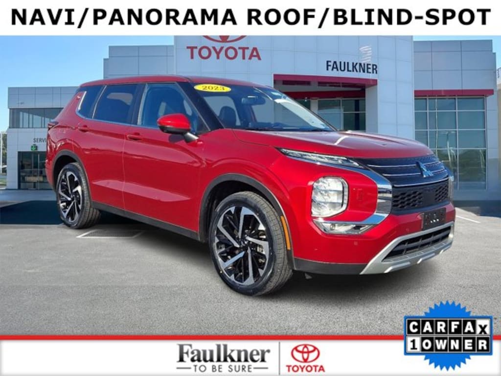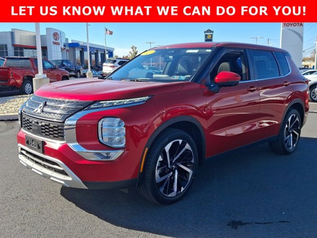 Priced below KBB Fair Purchase Price!CARFAX One-Owner, Non-Smoker, New Tires, 4WD, 3rd row seats: split-bench, 4-Wheel Disc Brakes, ABS brakes, Active Cruise Control, Android Auto & Apple CarPlay, Automatic temperature control, Brake assist, Dual front impact airbags, Dual front side impact airbags, Electronic Stability Control, Emergency communication system: Mitsubishi Connect w/ 24-month trial, Exterior Parking Camera Rear, Front dual zone A/C, Front fog lights, Heated door mirrors, Heated Front Bucket Seats, Heated front seats, Illuminated entry, Knee airbag, Low tire pressure warning, Navigation System, Occupant sensing airbag, Overhead airbag, Power driver seat, Power Liftgate, Radio: AM/FM 9.0" Navigation w/Smartphone Link, Rain sensing wipers, Rear side impact airbag, Remote keyless entry, Traction control, Wheels: 20" Two-Tone Alloy. CARFAX One-Owner.Red Diamond 2023 Mitsubishi Outlander SE 4WD CVT 2.5L 4-Cylinder DOHCOdometer is 5455 miles below market average! 24/30 City/Highway MPG