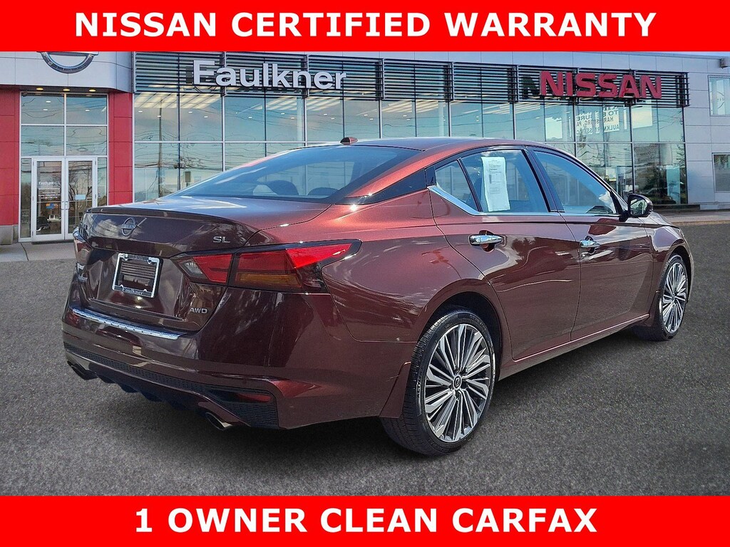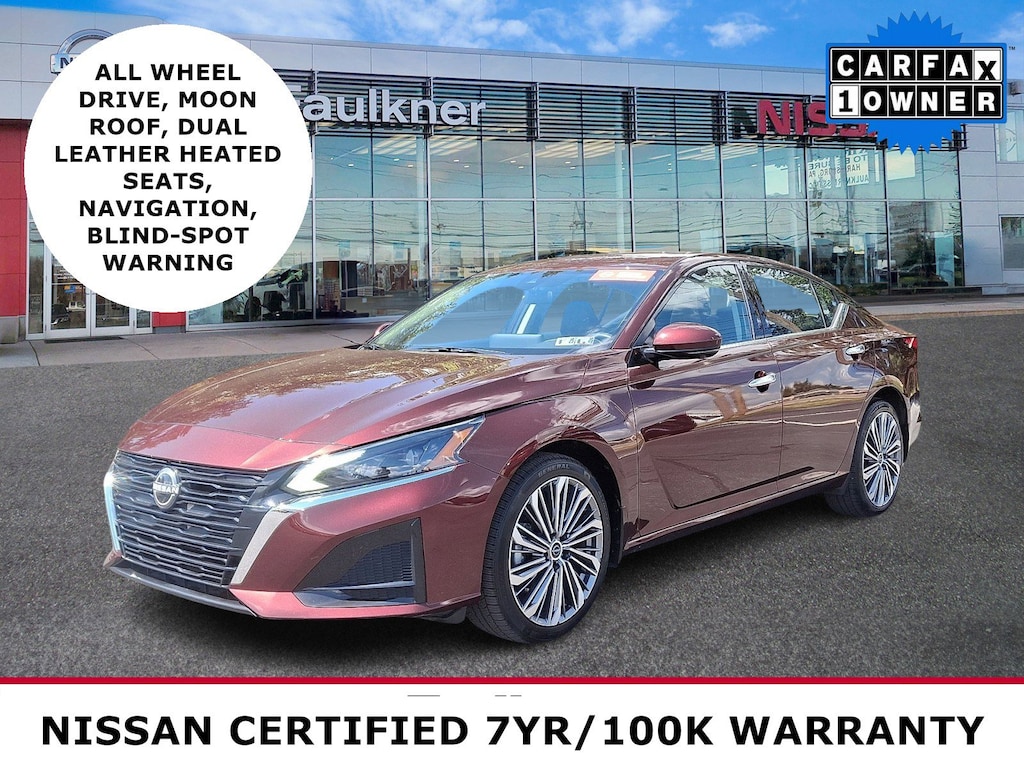 Priced below KBB Fair Purchase Price! 2023 Nissan Altima 2.5 SL Garnet Pearl Metallic *Schedule a test Drive at your home or office*, *SL Package*, *Non-Smoker*, CVT with Xtronic, 19 Unique Alloy Wheels, Automatic temperature control, Blind Spot Warning, Brake assist, Electronic Stability Control, Emergency communication system: NissanConnect Services, Heated door mirrors, Heated front seats, Heated steering wheel, Knee airbag, Leather-Appointed Seat Trim, Navigation System, Power driver seat, Power moonroof, Radio: AM/FM w/Bose Premium Sound System, Rear Parking Sensors, 4-Wheel Disc Brakes, 9 Speakers, ABS brakes, Air Conditioning, Alloy wheels, AM/FM radio: SiriusXM, Auto High-beam Headlights, Body-Colored Splash Guards, Bumpers: body-color, Chrome Bumper Protector, Compass, Delay-off headlights, Driver door bin, Driver vanity mirror, Dual front impact airbags, Dual front side impact airbags, Floor Mats/Trunk Mat/Hideaway Net, Four wheel independent suspension, Front anti-roll bar, Front Bucket Seats, Front Center Armrest, Front dual zone A/C, Front reading lights, Fully automatic headlights, Heated Front Bucket Seats, Illuminated entry, Illuminated Kick Plates, Leather Shift Knob, Low tire pressure warning, Occupant sensing airbag, Outside temperature display, Overhead airbag, Overhead console, Panic alarm, Passenger door bin, Passenger vanity mirror, Power door mirrors, Power passenger seat, Power steering, Power windows, Radio data system, Rear anti-roll bar, Rear reading lights, Rear seat center armrest, Rear side impact airbag, Rear window defroster, Remote keyless entry, Security system, Speed control, Speed-sensing steering, Speed-Sensitive Wipers, Split folding rear seat, Steering wheel mounted audio controls, Tachometer, Telescoping steering wheel, Tilt steering wheel, Traction control, Trip computer, Turn signal indicator mirrors, Variably intermittent wipers, CVT with Xtronic, 19 Unique Alloy Wheels, Automatic temperature control, Blind Spot Warning, Brake assist, Electronic Stability Control, Emergency communication system: NissanConnect Services, Heated door mirrors, Heated front seats, Heated steering wheel, Knee airbag, Leather-Appointed Seat Trim, Navigation System, Power driver seat, Power moonroof, Radio: AM/FM w/Bose Premium Sound System, Rear Parking Sensors.