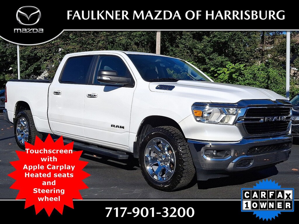 15/21 City/Highway MPG *Hands Free Calling*, **BACK UP CAMERA**, *Bluetooth*, *Local Trade*, *Non-Smoker*, *Alloy Wheels*, *Passed Rigorous Safety Inspection Performed by Certified Technician*, *Automatic Headlights*, *Heated Seats!*, *Push button Start*, Fixed Running Boards, 115V Auxiliary Power Outlet, 115V Auxiliary Rear Power Outlet, 2 USB Full Function/Charge Only Media Hub, 2nd Row In Floor Storage Bins, 400W Inverter, 48V Belt Starter Generator, 6 Speakers, Air Conditioning ATC w/Dual Zone Control, Alloy wheels, Anti-Spin Differential Rear Axle, Auto-Dimming Rear-View Mirror, Big Horn IP Badge, Big Horn Level 2 Equipment Group, Black Premium Power Mirrors, Class IV Receiver Hitch, Cloth Bench Seat, Dampened Tailgate, Delay-off headlights, Foam Bottle Insert (Door Trim Panel), Front fog lights, Fully automatic headlights, Glove Box Lamp, GPS Antenna Input, Heated door mirrors, Heated Front Seats, Heated Steering Wheel, Leather steering wheel, ParkSense Front/Rear Park Assist w/Stop, ParkView Rear Back-Up Camera, Power 4-Way Driver Lumbar Adjust, Power 8-Way Driver Seat, Power Adjustable Pedals, Power door mirrors, Quick Order Package 25Z Big Horn, Radio: Uconnect 4 w/8.4" Display, Rear Dome w/On/Off Switch Lamp, Rear Power Sliding Window, Rear Window Defroster, Remote Start System, Security Alarm, SiriusXM Satellite Radio, Sun Visors w/Illuminated Vanity Mirrors, Trailer Brake Control, Universal Garage Door Opener, Variably intermittent wipers.