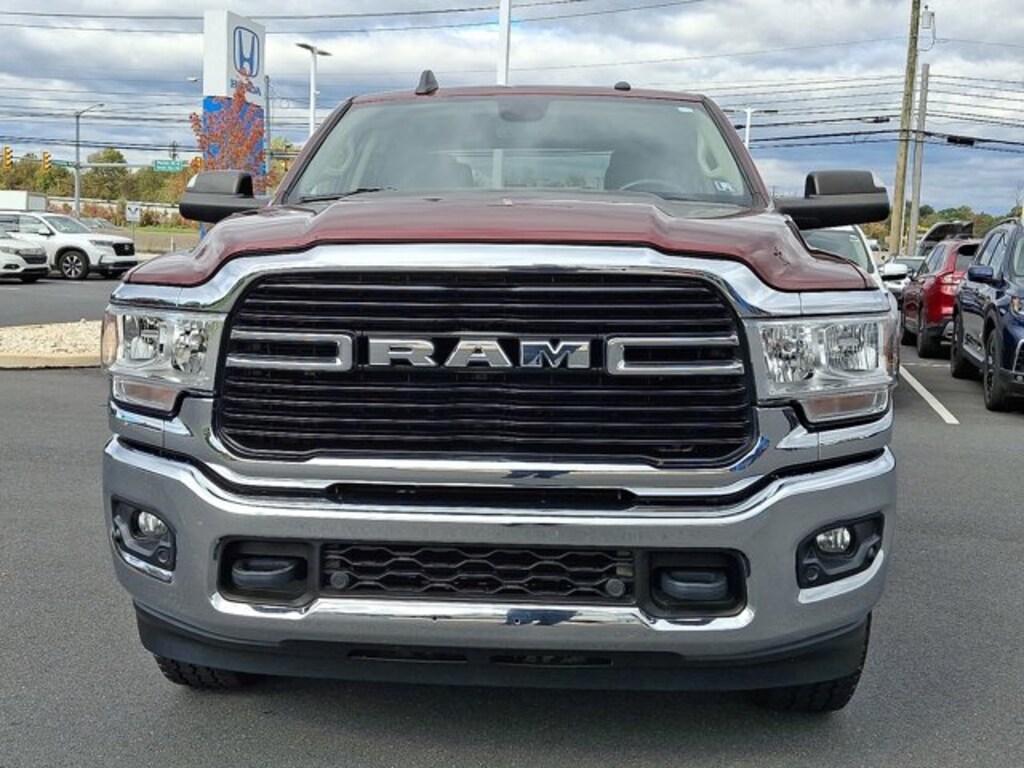 Recent Arrival! Clean CARFAX. Delmonico Red Pearlcoat This 2500 Big Horn is nicely equipped with Level 1 Equipment Group (2 Way Rear Headrest Seat, 2nd Row In Floor Storage Bins, 4 Way Front Headrests, 40/20/40 Split Bench Seat, 8.4" Touchscreen Display, Apple CarPlay, Auto-Dimming Rear-View Mirror, Center Hub, Center Stack Storage Drawer, Cluster 3.5" TFT Color Display, Dual Glove Boxes, Foam Bottle Insert (Door Trim Panel), Folding Flat Load Floor Storage, Footwell Courtesy Lamp, For More Info, Call 800-643-2112, Front Armrest w/Cupholders, Front Center Seat Cushion Storage, Front Fog Lamps, Front Seat Back Map Pockets, Glove Box Lamp, Google Android Auto, GPS Antenna Input, Integrated Center Stack Radio, Integrated Voice Command w/Bluetooth, Leather Wrapped Steering Wheel, Locking Lower Glove Box, Manual Adjust 4-Way Front Passenger Seat, Power 2-Way Driver Lumbar Adjust, Power Adjust 8-Way Driver Seat, Power Adjust/Fold & Heated Black Tow Mirrors, Power Adjustable Pedals, Power Folding Mirrors, Premium Cloth 40/20/40 Bench Seat, Radio: Uconnect 4 w/8.4" Display, Rear 60/40 Folding Seat, Rear Dome w/On/Off Switch Lamp, SiriusXM Radio Service, SiriusXM Satellite Radio, Steering Wheel Mounted Audio Controls, Sun Visors w/Illuminated Vanity Mirrors, Universal Garage Door Opener, USB Host Flip, and Wheels: 18" x 8.0" Polished Aluminum), Quick Order Package 2HZ Big Horn, 1-Year SiriusXM Guardian Trial, 220 Amp Alternator, 3.73 Axle Ratio, 4-Wheel Disc Brakes, 5-Year SiriusXM Traffic Service, 5-Year SiriusXM Travel Link Service, 6 Speakers, 9 Alpine Speakers w/Subwoofer, ABS brakes, Active Noise Control System, Air Conditioning, Air Conditioning ATC w/Dual Zone Control, AM/FM radio, Blind Spot & Cross Path Detection, Brake assist, Bumpers: chrome, Cloth 40/20/40 Bench Seat, Compass, CTR Stop Lamp w/Cargo View Camera, Delay-off headlights, Disassociated Touchscreen Display, Driver door bin, Dual front impact airbags, Dual front side impact airbags, Electronic Stability Control, Electronically Controlled Throttle, For Details Visit DriveUconnect.com, Front anti-roll bar, Front Center Armrest w/Storage, Front reading lights, Fully automatic headlights, GPS Navigation, HD Radio, Heated door mirrors, I/P Mounted Auxiliary Switches, Illuminated entry, LED Tail Lamps, Low tire pressure warning, Manual Adjust 4-Way Driver Seat, Manufacturer's Statement of Origin, Occupant sensing airbag, Outside temperature display, Overhead airbag, Overhead console, Panic alarm, ParkSense Front/Rear Park Assist System, ParkView Rear Back-Up Camera, Passenger door bin, Passenger vanity mirror, Power door mirrors, Power steering, Power windows, Radio data system, Radio: Uconnect 3 w/5" Display, Radio: Uconnect 4C Nav w/8.4" Display, Rear anti-roll bar, Rear Backup Alarm, Rear Folding Seat, Rear seat center armrest, Rear step bumper, Rear Wheelhouse Liners, Remote keyless entry, SiriusXM Traffic Plus, SiriusXM Travel Link, Speed control, Tachometer, Tilt steering wheel, Tip Start, Traction control, Trip computer, Turn signal indicator mirrors, Variably intermittent wipers, Vendor Painted Cargo Box Tracking, Voltmeter, and Wheels: 18" x 8.0" Steel Chrome ClaD.