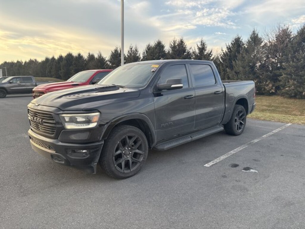 Recent Arrival! Certified. Diamond Black Crystal Pearlcoat This 1500 Laramie is nicely equipped with Laramie Level II Equipment Group (2nd Row In Floor Storage Bins, 4G LTE Wi-Fi Hot Spot, 8.4" Touchscreen Display, All R1 High Radios, All Radio Equipped Vehicles, Apple CarPlay, Auto High Beam Headlamp Control, Blind Spot & Cross Path Detection, Connected Travel & Traffic Services, Connectivity - US/Canada, Disassociated Touchscreen Display, Foam Bottle Insert (Door Trim Panel), For Details, Visit DriveUconnect.com, For More Info, Call 800-643-2112, Global Telematics Box Module (TBM), Google Android Auto, GPS Antenna Input, GPS Navigation, harman/kardon 19 Speaker Premium Sound, HD Radio, Integrated Center Stack Radio, Integrated Voice Command w/Bluetooth, ParkSense Front/Rear Park Assist w/Stop, Radio: Uconnect 5 Nav w/8.4" Display, Rain Sensitive Windshield Wipers, Remote Tailgate Release, SiriusXM Radio Service, SiriusXM w/360L, USB Host Flip, and Wireless Charging Pad), Night Edition (#1 Seat Foam Cushion, 3 Rear Seat Head Restraints, 4 Way Front Headrests, Accent Color Premium Power Mirrors, Auto-Dimming Exterior Driver Mirror, Black Exterior Truck Badging, Black Headlamp Bezels, Black Interior Accents, Black Painted Exterior Mirrors Caps, Body Color Door Handles, Body Color Front Bumper, Body Color Rear Bumper w/Step Pads, Bucket Seats, Convex Wide-Angle Mirror Insert, Delete LED Lamp - Floor Console Bin, Driver Seat Memory, Dual Exhaust w/Black Tips, Exterior Mirrors Courtesy Lamps, Exterior Mirrors w/Heating Element, Exterior Mirrors w/Memory, Exterior Mirrors w/Supplemental Signals, Front Seat Back Map Pockets, Full Length Upgraded Floor Console, Grille Surround 3 Black Texture 2 Black, Heated Front Seats, Heated Steering Wheel, Leather Trimmed Bucket Seats, Mopar Black Tubular Side Steps, Power 2-Way Driver Lumbar Adjust, Power 2-Way Passenger Lumbar Adjust, Power 8-Way Driver & Passenger Seats, Power-Folding Mirrors, Rear 60/40 Folding Seat, Sport Performance Hood, Twill Film Appliques, and Ventilated Front Seats), Quick Order Package 27H Laramie, FCA US LLC Certified Pre-Owned Certified, 10 Speakers, 12" Touchscreen Display, 3.21 Rear Axle Ratio, 4-Wheel Disc Brakes, 48V Belt Starter Generator, ABS brakes, Adjustable pedals, Air Conditioning, Alloy wheels, AM/FM radio: SiriusXM, Anti-Spin Differential Rear Axle, Apple CarPlay/Android Auto, Audio memory, Auto-dimming door mirrors, Auto-dimming Rear-View mirror, Automatic temperature control, Brake assist, Bumpers: chrome, Chrome Exterior Mirrors, Compass, Delay-off headlights, Dome Dual LED Reading Lamp, Driver door bin, Driver vanity mirror, Dual front impact airbags, Dual front side impact airbags, Dual-Pane Panoramic Sunroof, Electronic Stability Control, Front anti-roll bar, Front Center Armrest w/Storage, Front dual zone A/C, Front fog lights, Front reading lights, Front wheel independent suspension, Fully automatic headlights, Garage door transmitter, Heated door mirrors, Heated front seats, Heated steering wheel, Illuminated entry, Leather steering wheel, Leather Trim 40/20/40 Bench Seat, LED Dome/Reading Lamp, Low tire pressure warning, Memory seat, Occupant sensing airbag, Outside temperature display, Overhead airbag, Overhead console, Panic alarm, ParkView Rear Back-Up Camera, Passenger door bin, Passenger vanity mirror, Pedal memory, Pick-Up Box Lighting, Power door mirrors, Power driver seat, Power passenger seat, Power steering, Power windows, Radio data system, Radio: Uconnect 5 Nav w/12.0" Display, Radio: Uconnect 5 W w/8.4" Display, Rear anti-roll bar, Rear seat center armrest, Rear step bumper, Rear Wheelhouse Liners, Rear window defroster, Remote keyless entry, Security system, Speed control, Split folding rear seat, Steering wheel mounted audio controls, Tachometer, Telescoping steering wheel, Tilt steering wheel, Traction control, Tri-Fold Tonneau Cover, Trip computer, Turn signal indicator mirrors, Variably intermittent wipers, Ventilated fro