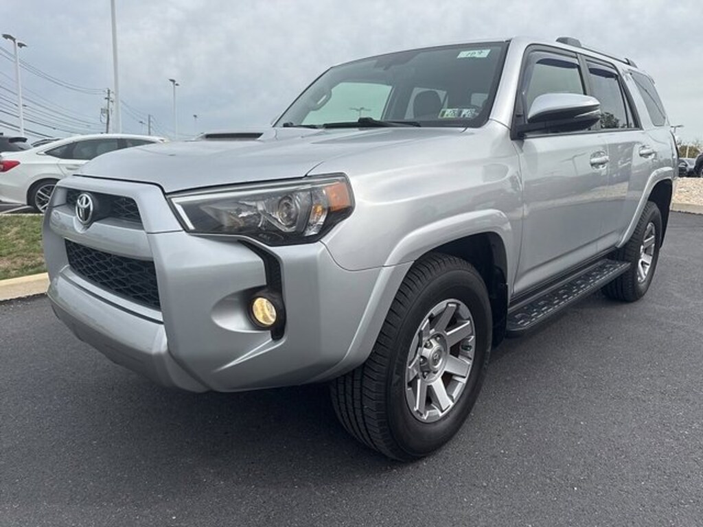 CARFAX One-Owner, Local Trade, Non-Smoker, 4WD, Black w/Softex Synthetic Leather Seat Trim, ABS brakes, Alloy wheels, AM/FM radio: SiriusXM, Anti-whiplash front head restraints, Auto-Dimming Rear-View Mirror, Body Color Heated Mirrors, Compass, Dual front impact airbags, Dual front side impact airbags, Electronic Stability Control, Exterior Parking Camera Rear, Front wheel independent suspension, Garage Door Opener, Garage door transmitter: HomeLink, Heated door mirrors, Heated Front Bucket Seats, Heated front seats, Illuminated entry, Knee airbag, Low tire pressure warning, Navigation System, Occupant sensing airbag, Outside temperature display, Overhead airbag, Power driver seat, Power moonroof, Power passenger seat, Power Tilt & Slide Moonroof w/Sunshade, Radio: Entune Premium Audio w/Navigation, Remote keyless entry, Softex Synthetic Leather Seat Trim, Speed control, Split folding rear seat, Steering wheel mounted audio controls, Telescoping steering wheel, Tilt steering wheel, Traction control, Trail Premium Package w/SofTex, Turn signal indicator mirrors, Variably intermittent wipers, Wheels: 17" x 7.5" 7-Spoke Unique Off-Road Alloy. CARFAX One-Owner. Certified.Classic Silver Metallic 2016 Toyota 4Runner Trail Premium CERTIFIED 4WD Automatic 4.0L V6 SMPI DOHCRecent Arrival! Odometer is 32916 miles below market average!Toyota Silver Certified Details:* SILVER CERTIFIED Eligibility: Vehicles up to 10 Model Years Old & Between 60,000-125,000 Miles on Odometer; Outside Gold Eligibility Parameters, Limited Powertrain Warranty: 12-Month/12,000-Mile(2), 24-Hour Roadside Assistance: 12-Month/12,000-Mile(3), Extended Warranty Coverage (items 2 and 3 above) Transferable at No Cost For Added Resale Value, Quality Assurance Inspection: 136-Point Minimum, Free CARFAX Vehicle History Report, Warranty Honored at Over 1,400 Toyota Dealers in the Continental U.S. and Canada, Trade-Ins Accepted, Trouble-free Handling of Your Transaction; Including DMV PaperworkAwards:* 2016 KBB.com Best Resale Value Awards
