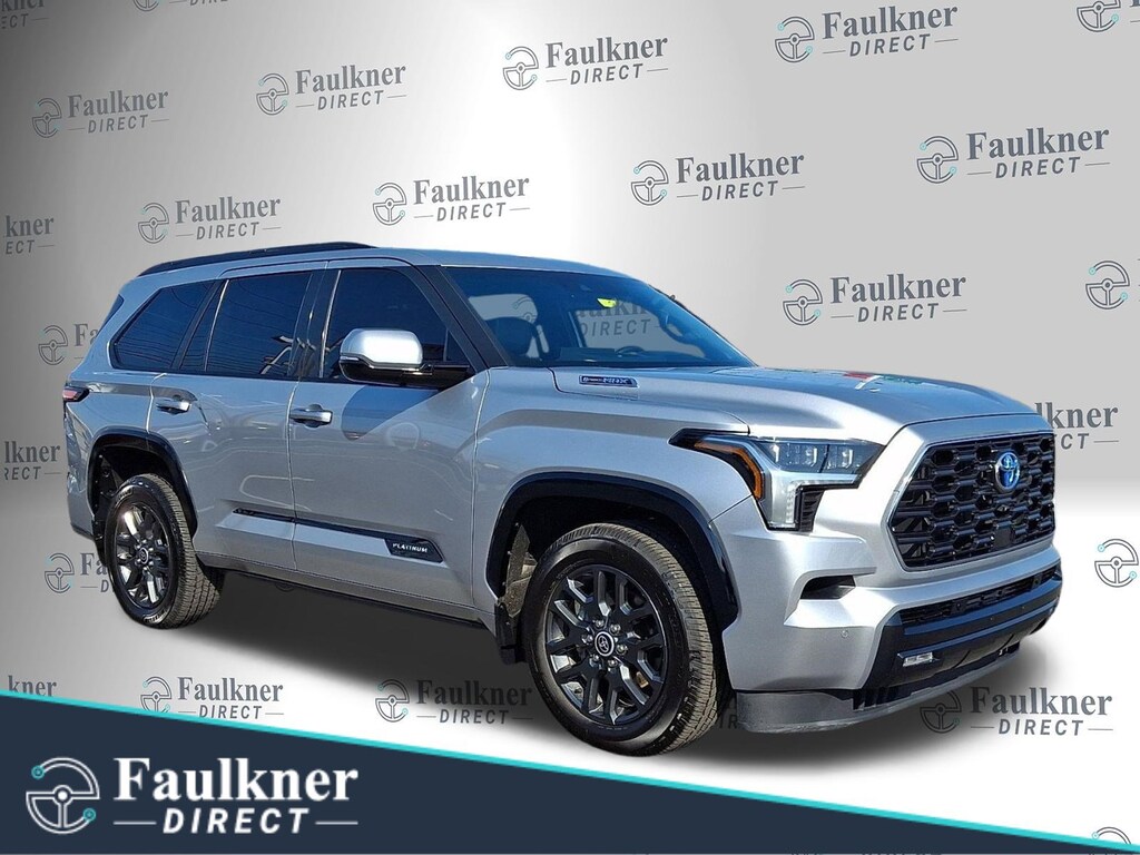 2023 Toyota Sequoia Platinum Celestial Silver Metallic V6 Hybrid, 10-Speed Automatic, 4WD, ABS brakes, Active Cruise Control, Alloy wheels, Compass, Electronic Stability Control, Front dual zone A/C, Heated & Ventilated Front Seats, Heated door mirrors, Heated front seats, Heated rear seats, Illuminated entry, Leather Seat Trim, Low tire pressure warning, Power Liftgate, Power moonroof, Remote keyless entry, Traction control.