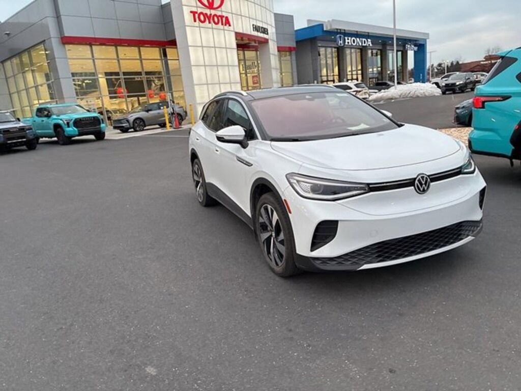 CARFAX One-Owner, Local Trade, Non-Smoker, 4 Wheel Independent Suspension, ABS brakes, Auto-dimming Rear-View mirror, Automatic temperature control, Brake assist, Dual front impact airbags, Dual front side impact airbags, Electronic Stability Control, Emergency communication system: VW Car-Net services (capabilities require enrollment or subscription), Exterior Parking Camera Rear, Four wheel independent suspension, Front anti-roll bar, Front dual zone A/C, Heated door mirrors, Heated Front Seats, Heated front seats, Heated steering wheel, Low tire pressure warning, Memory seat, Navigation System, Occupant sensing airbag, Overhead airbag, Perforated V-Tex Leatherette Seating Surfaces, Power door mirrors, Power driver seat, Power Liftgate, Power steering, Power windows, Radio: Discover Pro Max w/12" Touchscreen Nav, Rain sensing wipers, Rear anti-roll bar, Remote keyless entry, Speed control, Speed-sensing steering, Steering wheel mounted audio controls, Telescoping steering wheel, Tilt steering wheel, Traction control, Wheels: 19" 5-Spoke 2-Tone Machined Alloy. CARFAX One-Owner.Glacier White Metallic 2022 Volkswagen ID.4 Pro S AWD Automatic Electric MotorRecent Arrival! 100/90 City/Highway MPG
